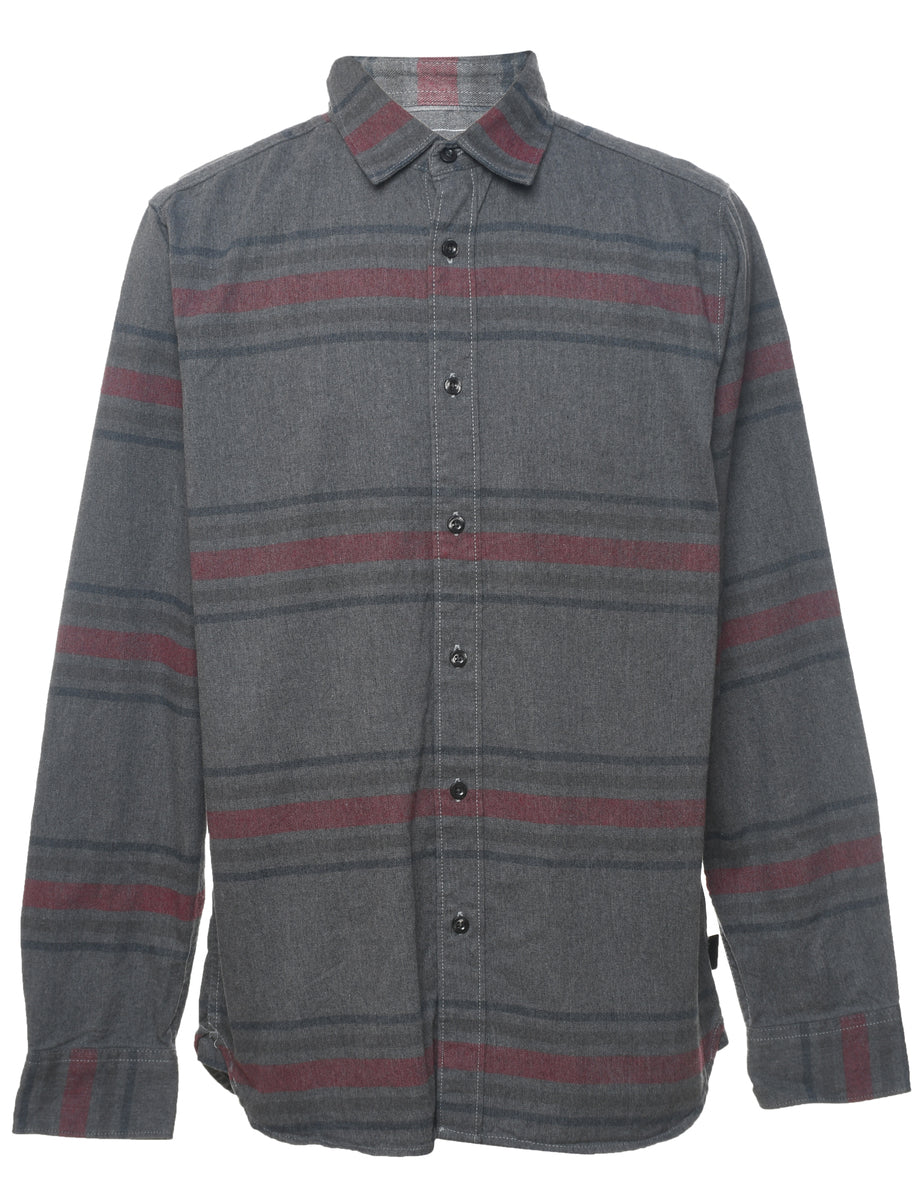 The North Face striped shirt comes in grey with a classic collar.
