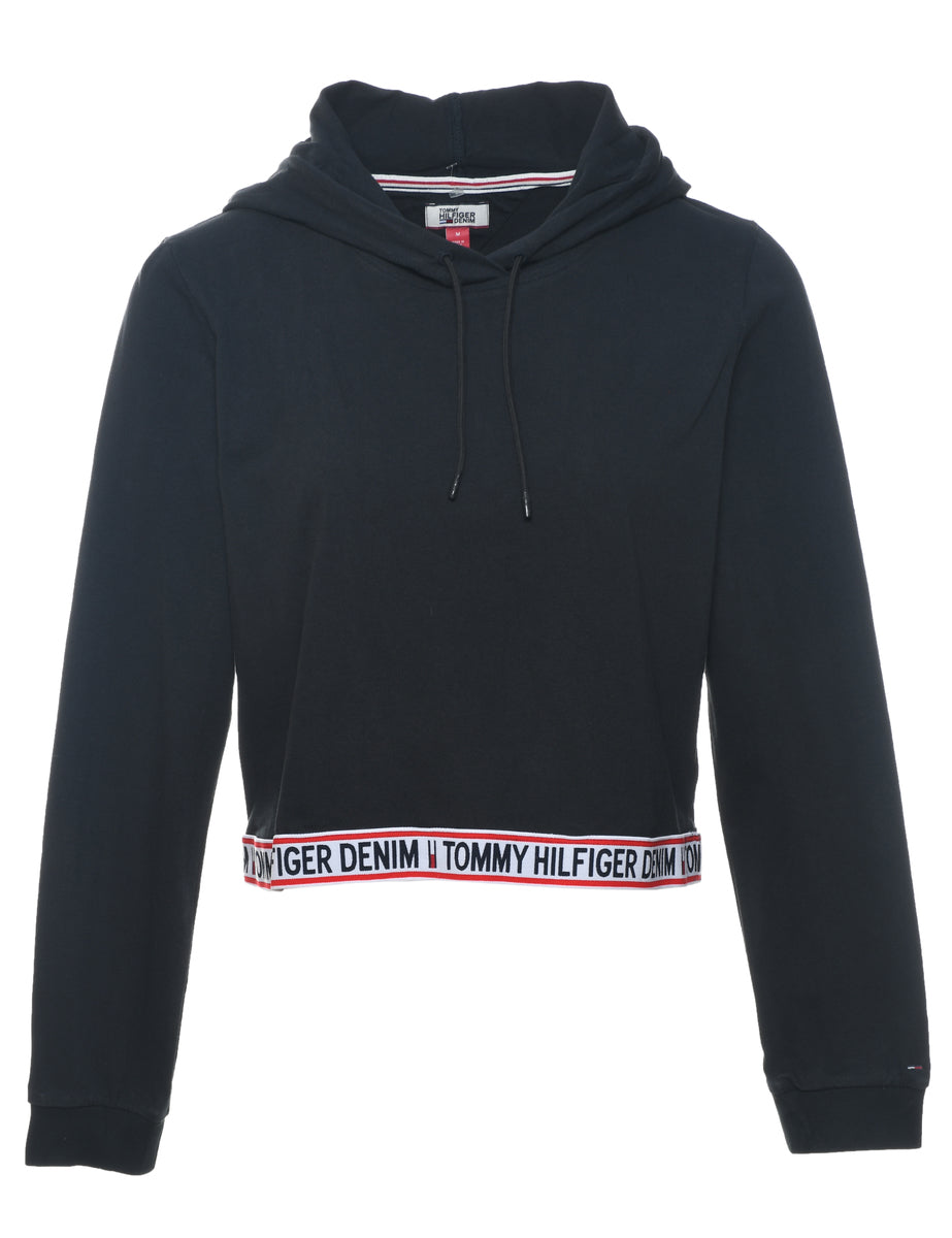 Tommy Hilfiger cropped black 1990s hooded sweatshirt.