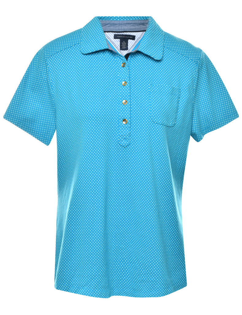 Tommy Hilfiger polka dot polo shirt. Comes in blue & white complete with one pocket.