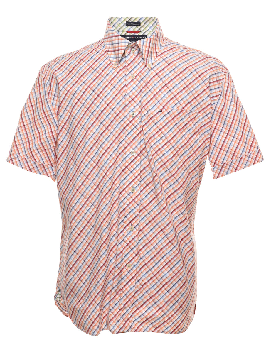 Tommy Hilfiger short sleeve checked shirt in multi-colour with one pocket.