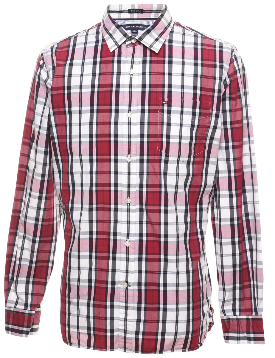 Tommy Hilfiger Checked White, Navy & Maroon Shirt - L