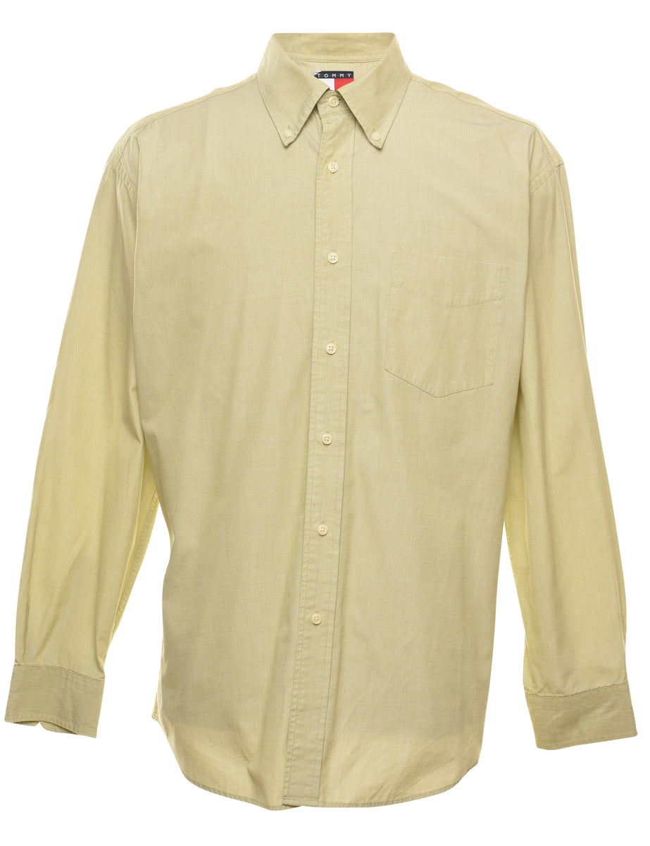 Tommy Hilfiger long-sleeved light green shirt complete with one pocket.