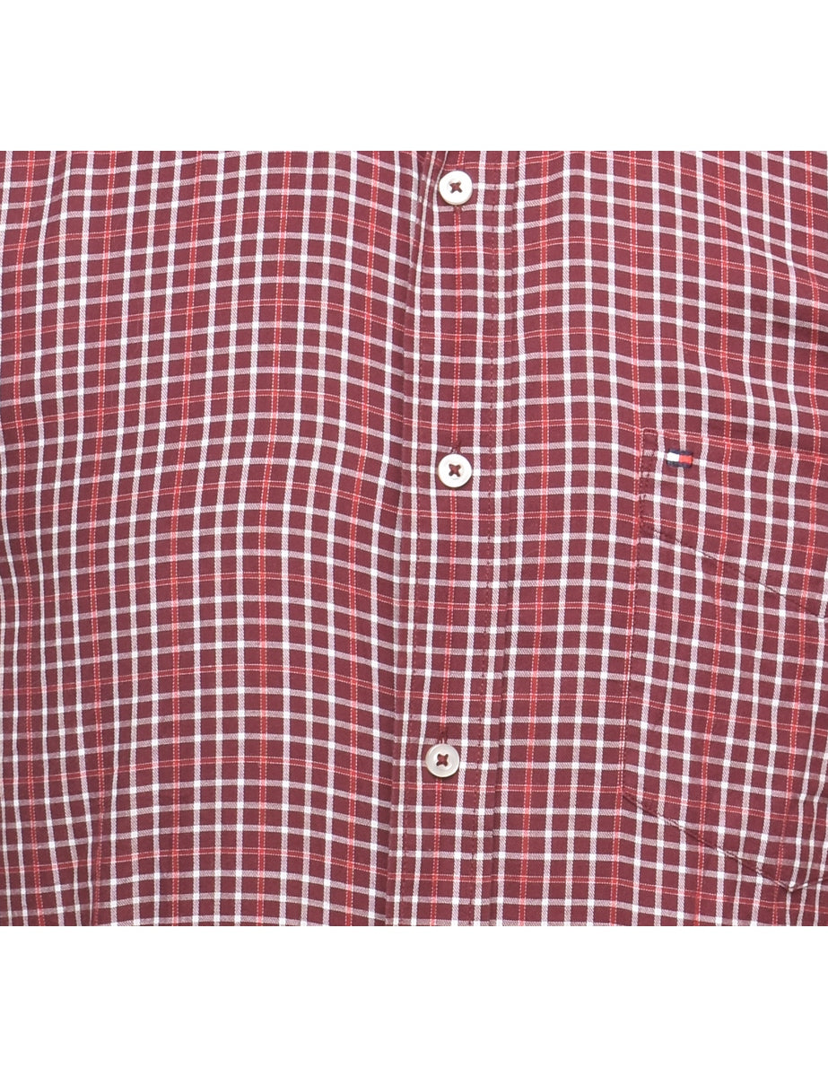 Tommy Hilfiger long-sleeved checked maroon shirt complete with one pocket.