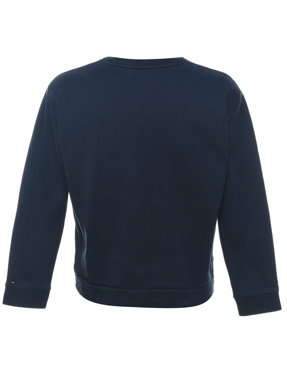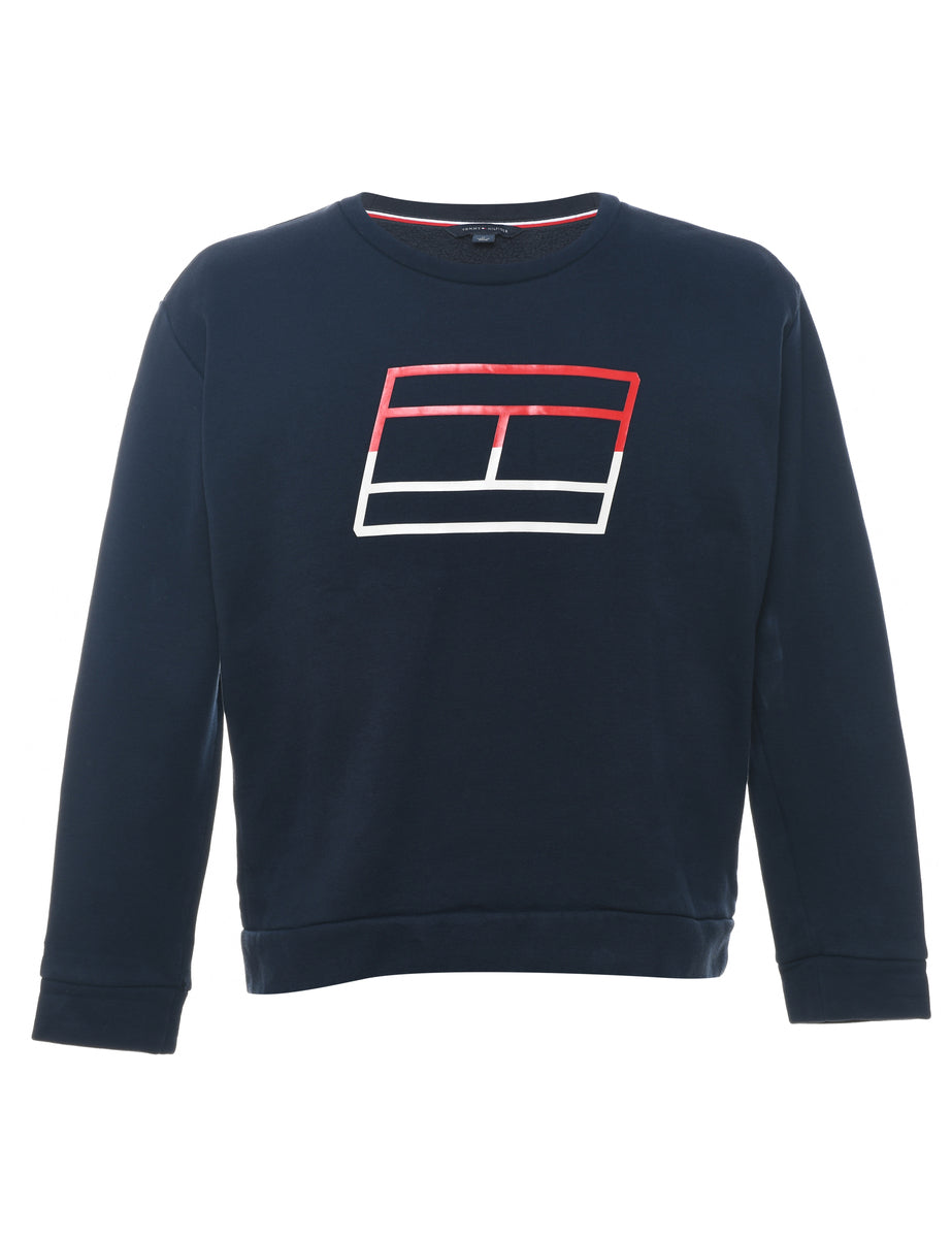Navy Tommy Hilfiger printed sweatshirt with a round neck.