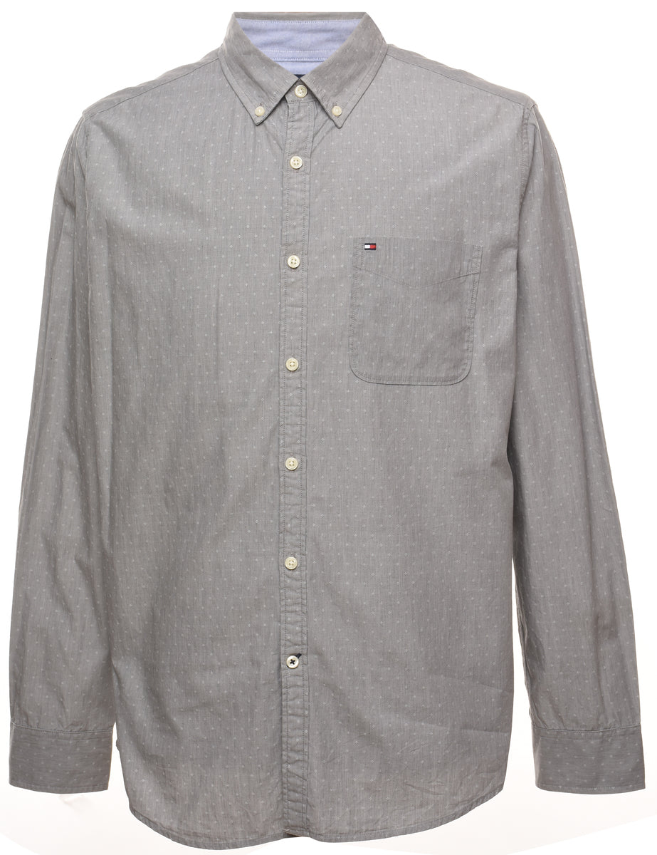 Tommy Hilfiger long sleeved shirt in grey with one pocket.