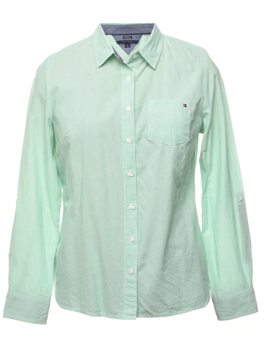 Tommy Hilfiger striped shirt in green with a classic collar and a button front.