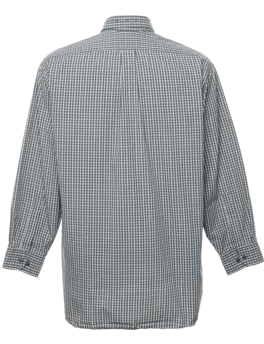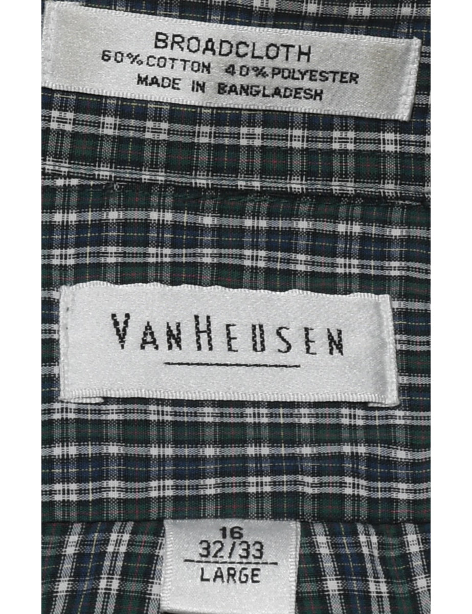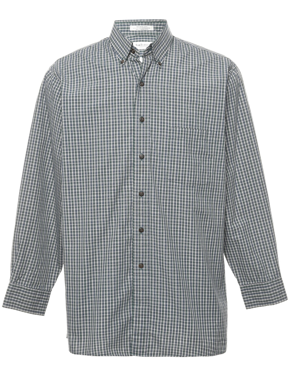Van Heusen long sleeved checked shirt in dark green with one pocket.