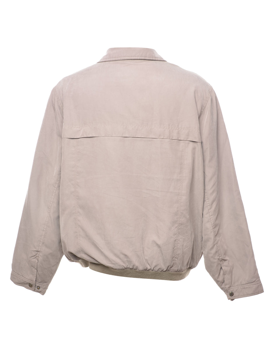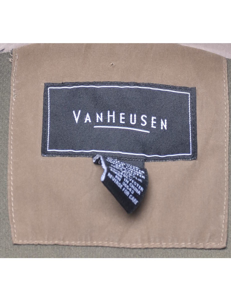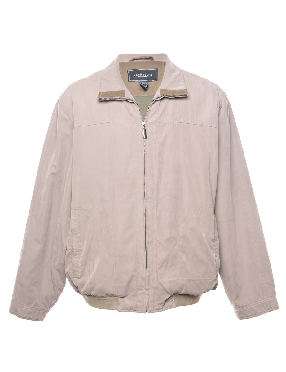 Van Heusen zip front jacket in beige with full lining and multiple pockets.