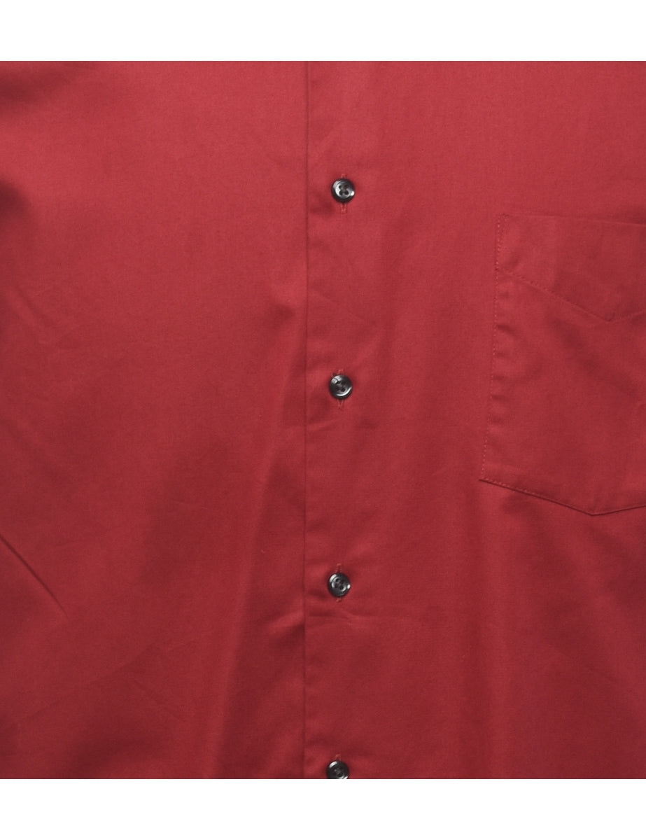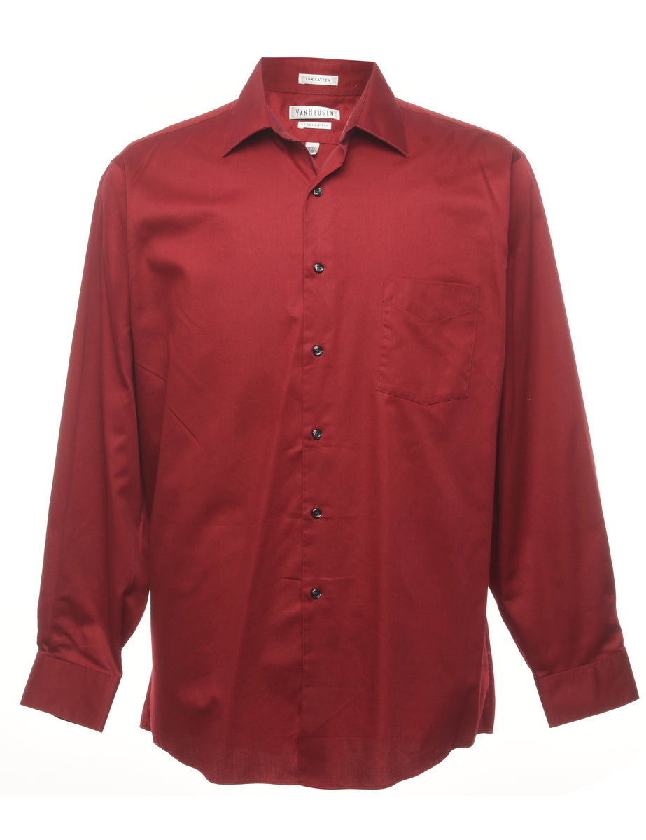 Long sleeved shirt. Comes in burgundy with a classic collar and one pocket.