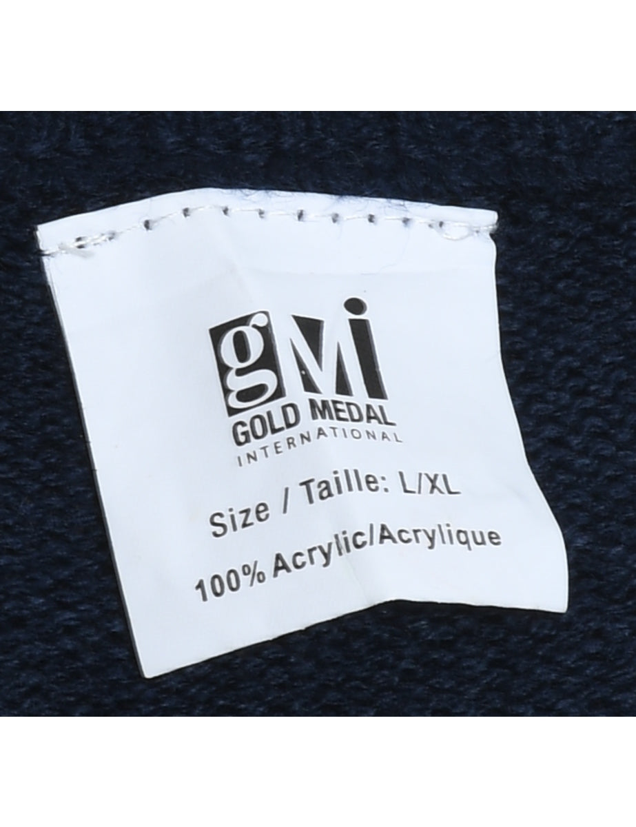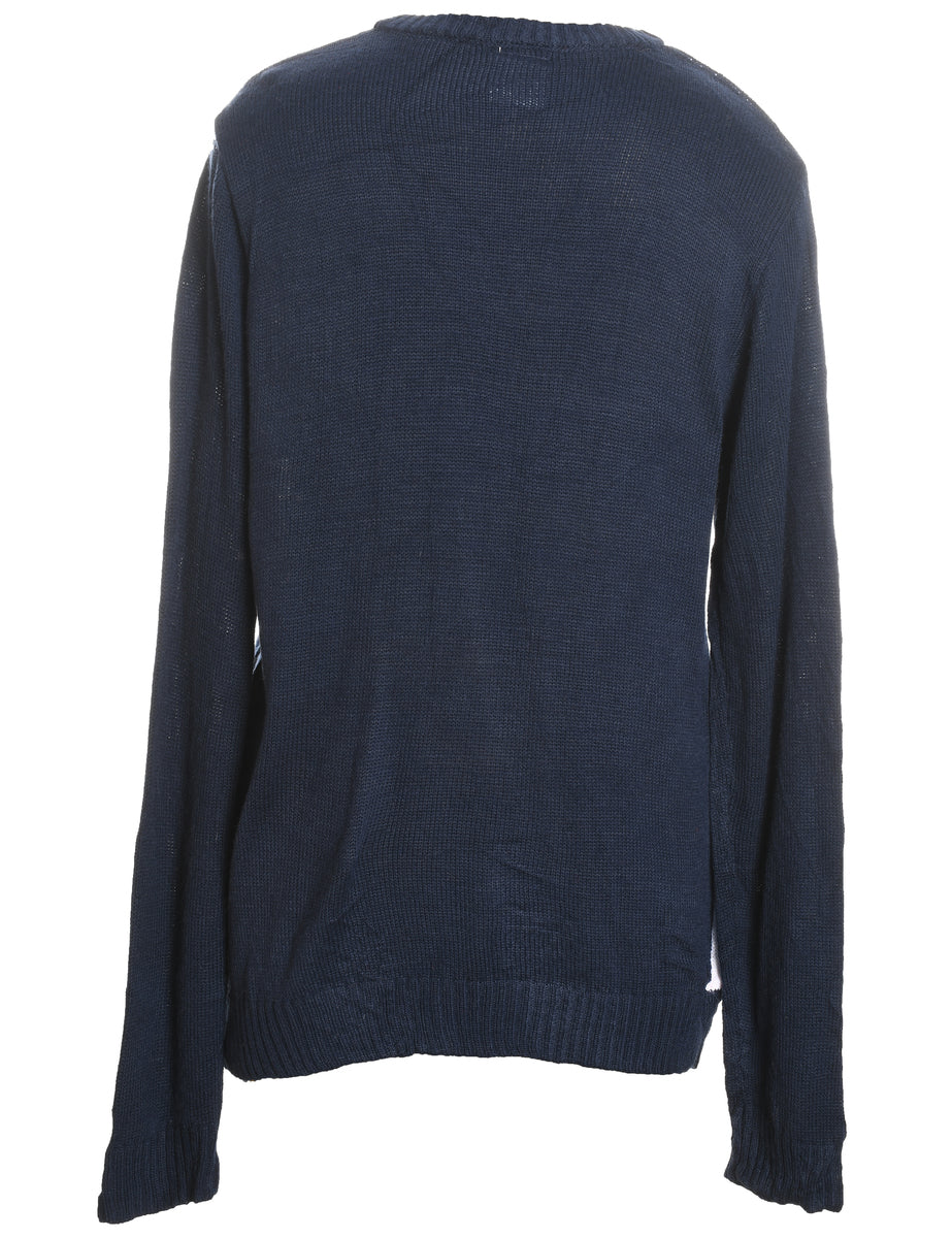 Christmas Tree Design Navy Christmas Jumper - XL