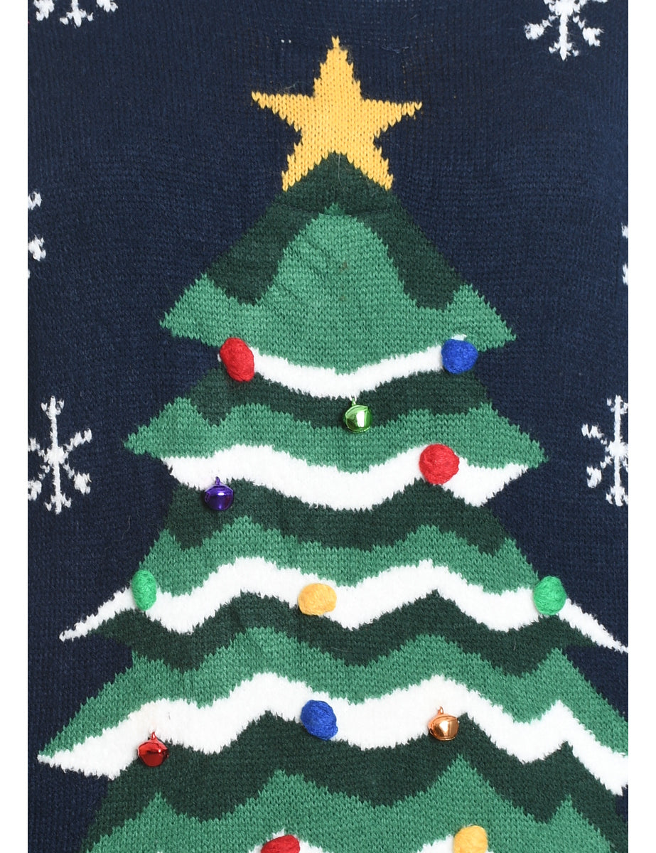Christmas Tree Design Navy Knit Jumper - M