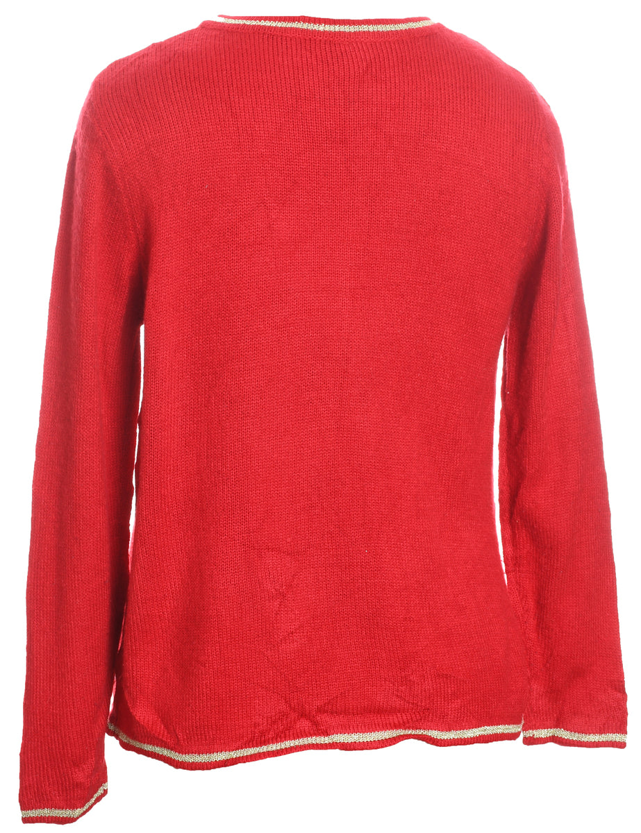 Santa claus red christmas jumper with an applique design.