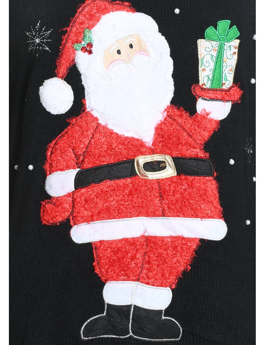 Santa Claus design black embroidered Christmas jumper.