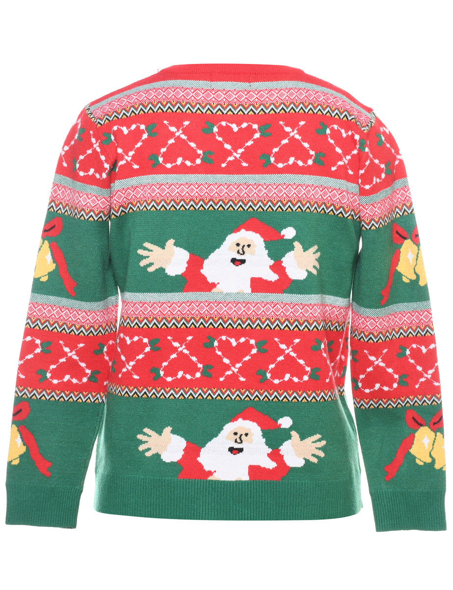 Santa claus christmas jumper comes in multi-colour. The size label mentions XL but based on the actual measurements we consider it a size S.