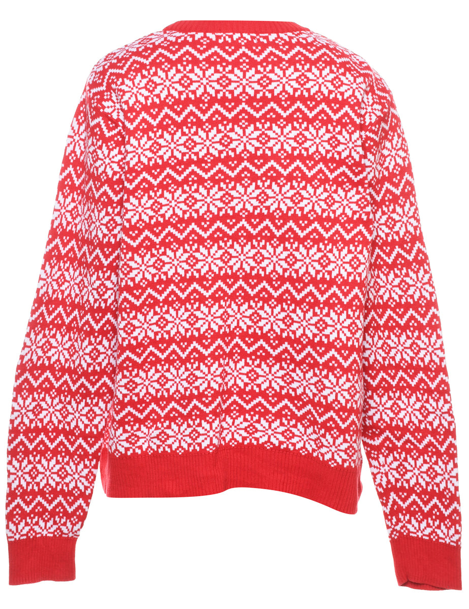 Santa claus christmas jumper with nordic print in red with an applique design.