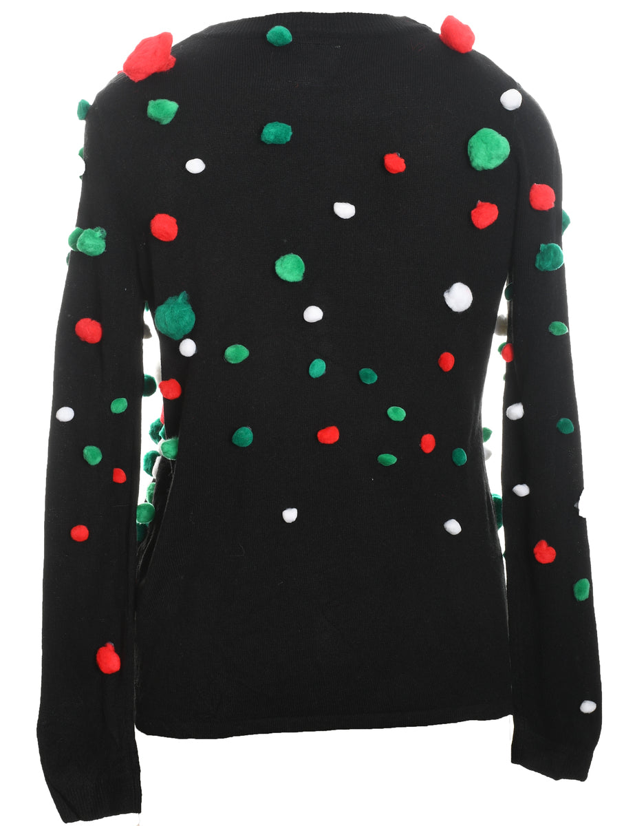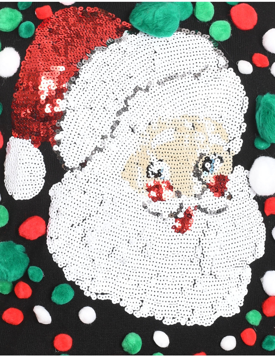 Santa Claus pom-pom design green, black & red Christmas jumper complete with sequins.