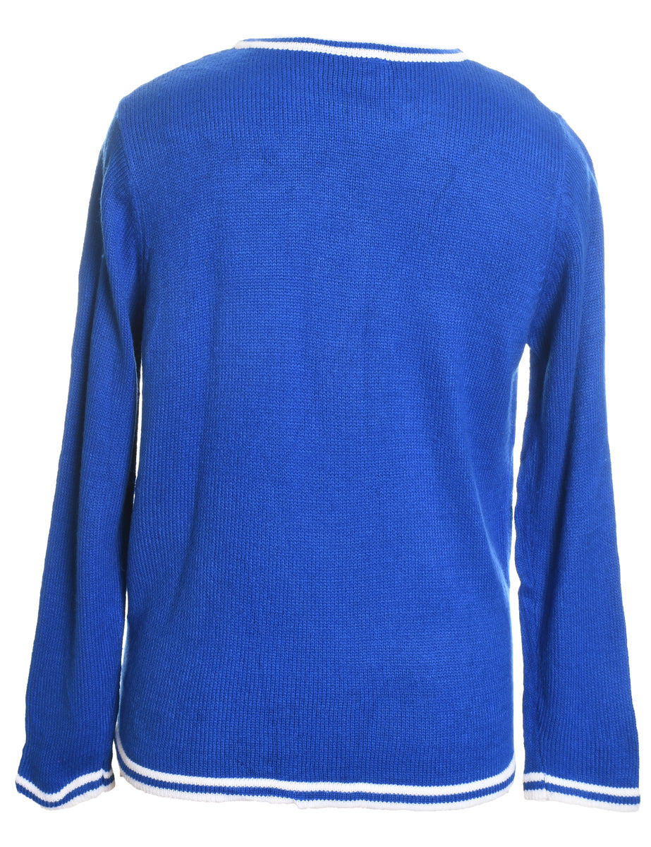 Santa Claus Design Blue Embroidered Christmas Jumper - M