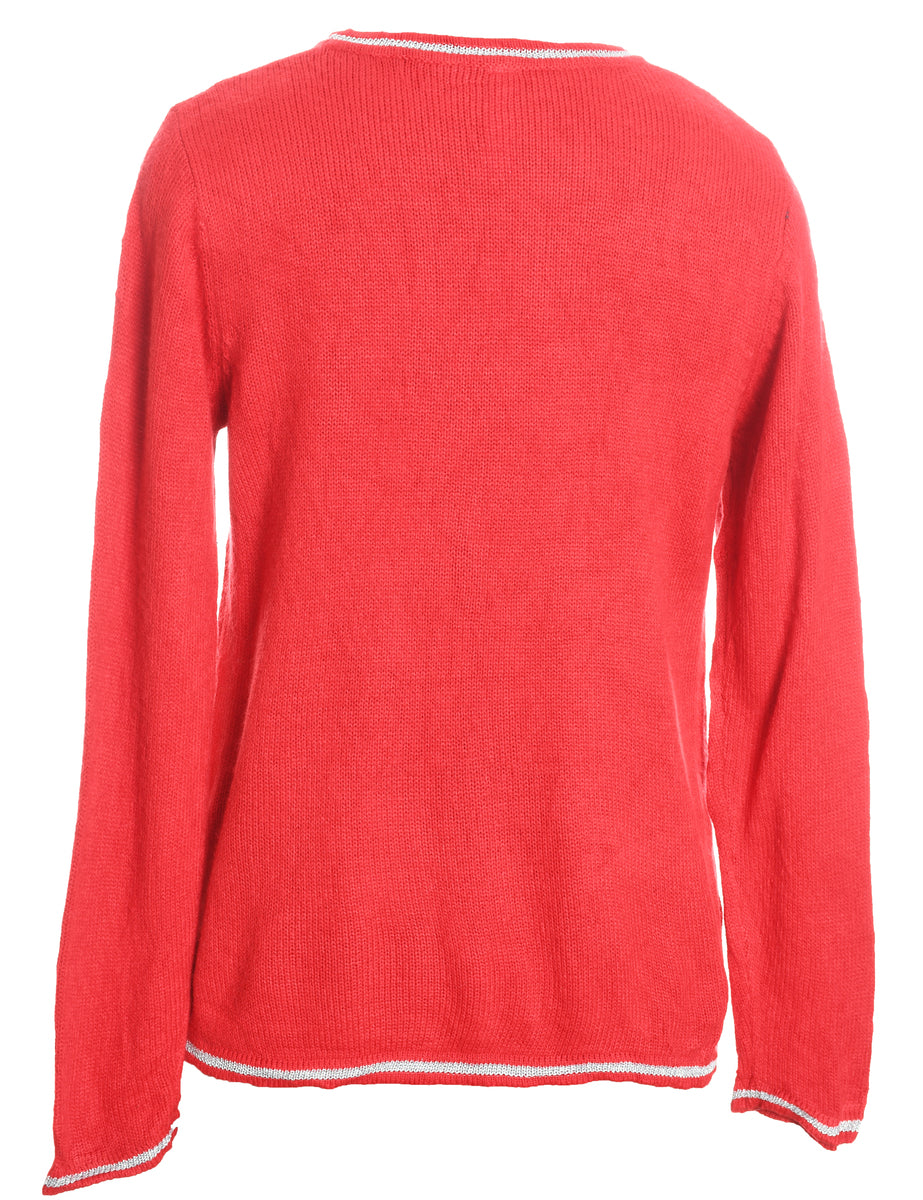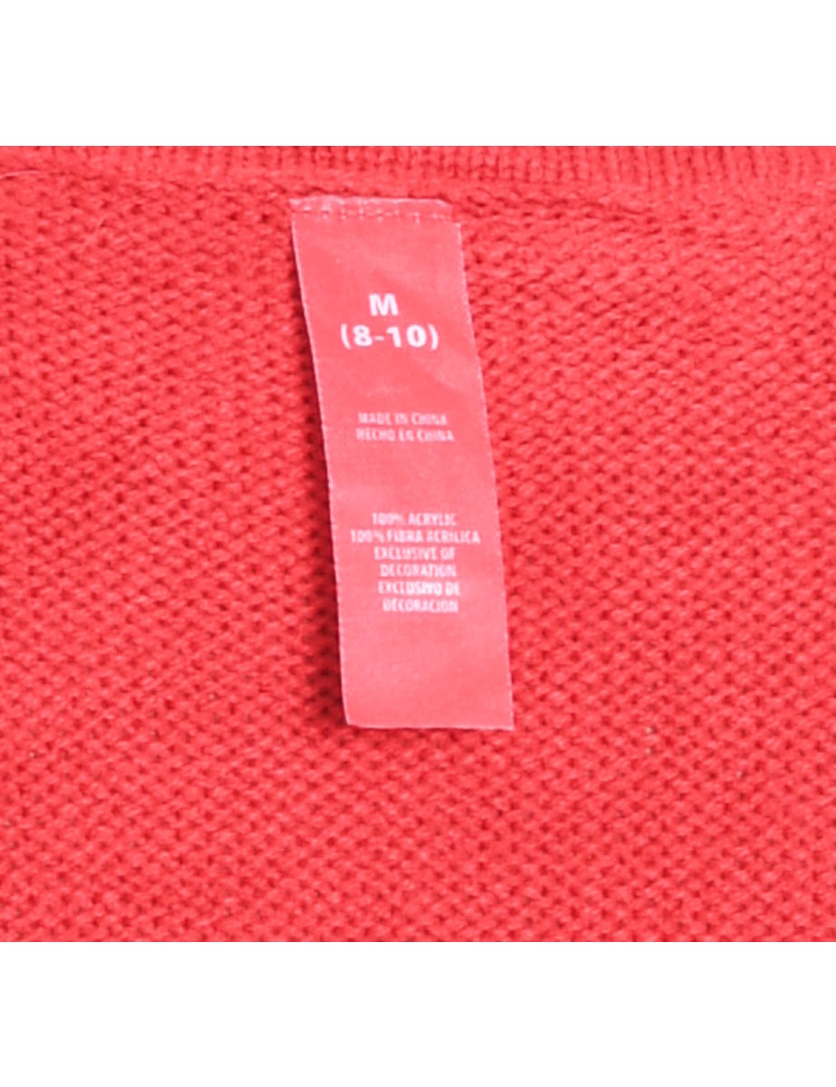 Santa Claus design red knit jumper complete with an applique design and beading.