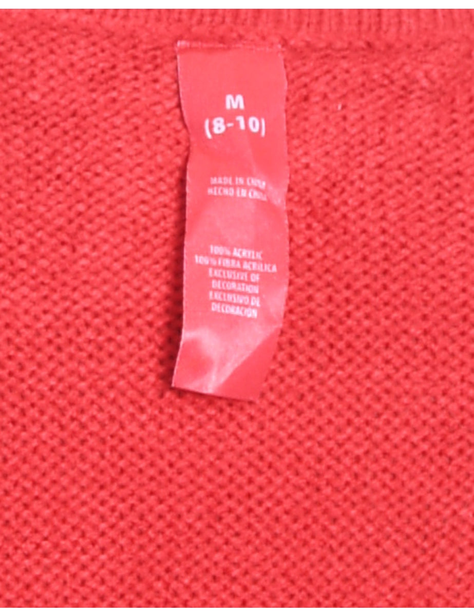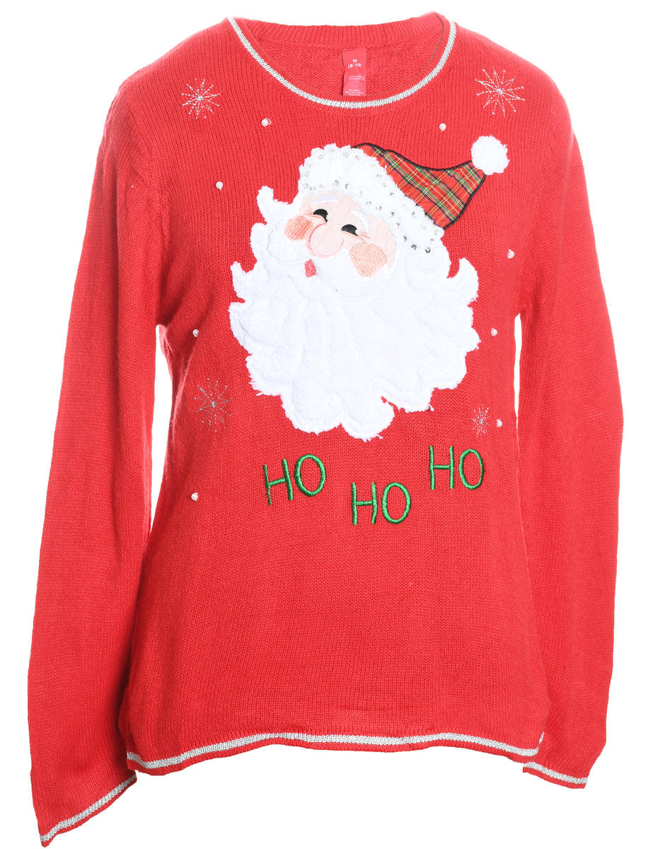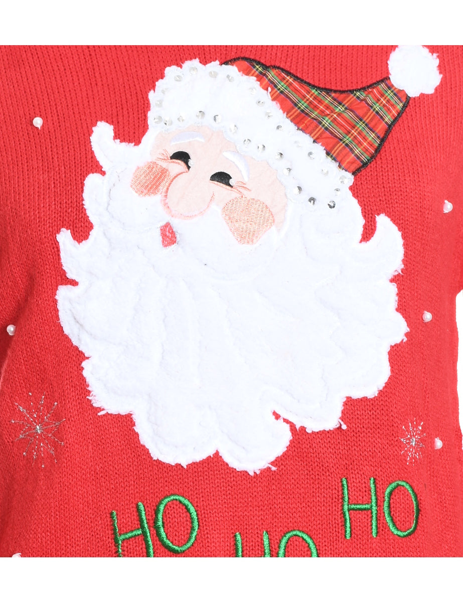 Santa Claus design red knit Christmas jumper complete with embroidery and beading.