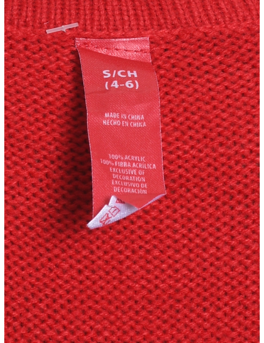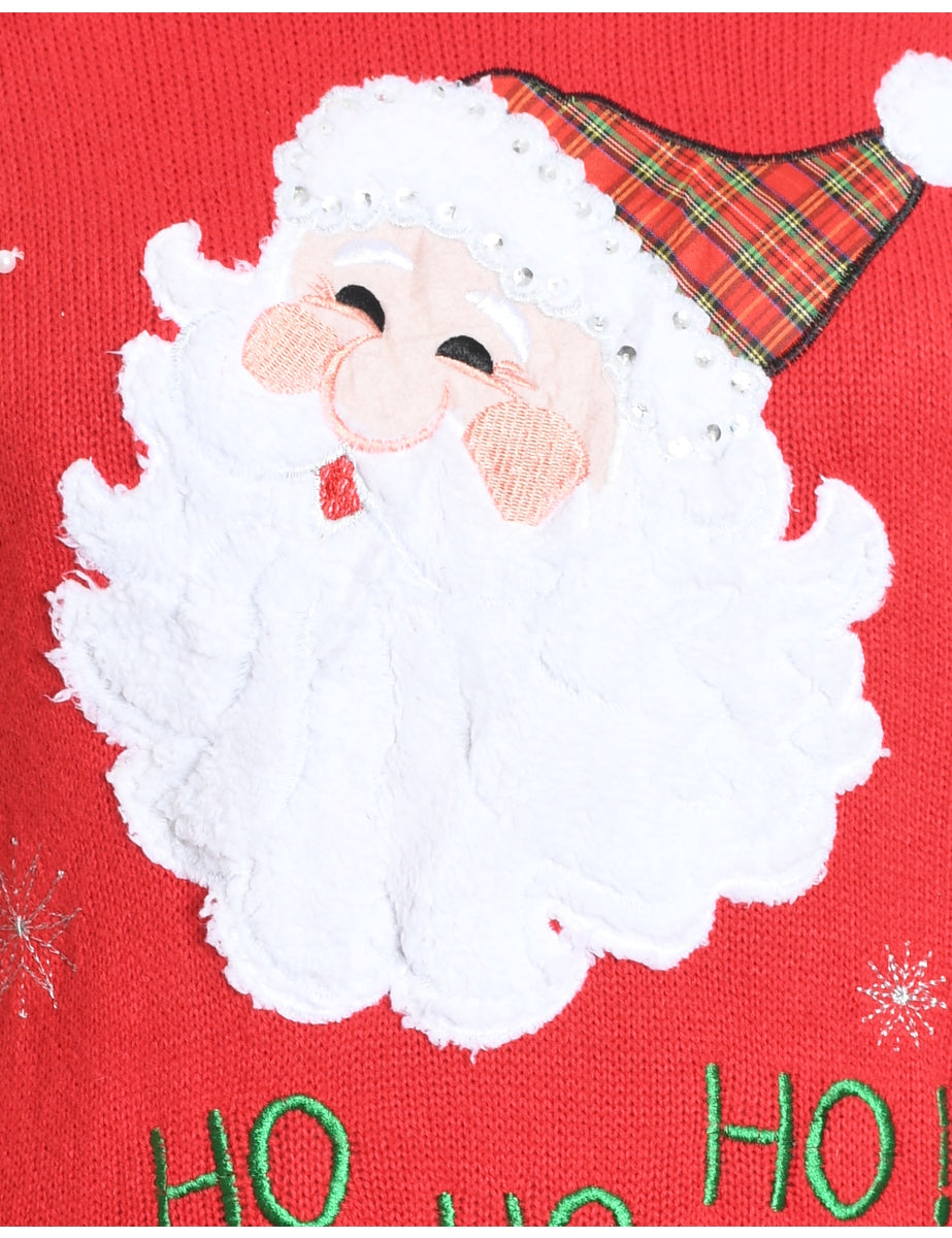 Santa Claus design red knit jumper complete with embroidery and sequins.