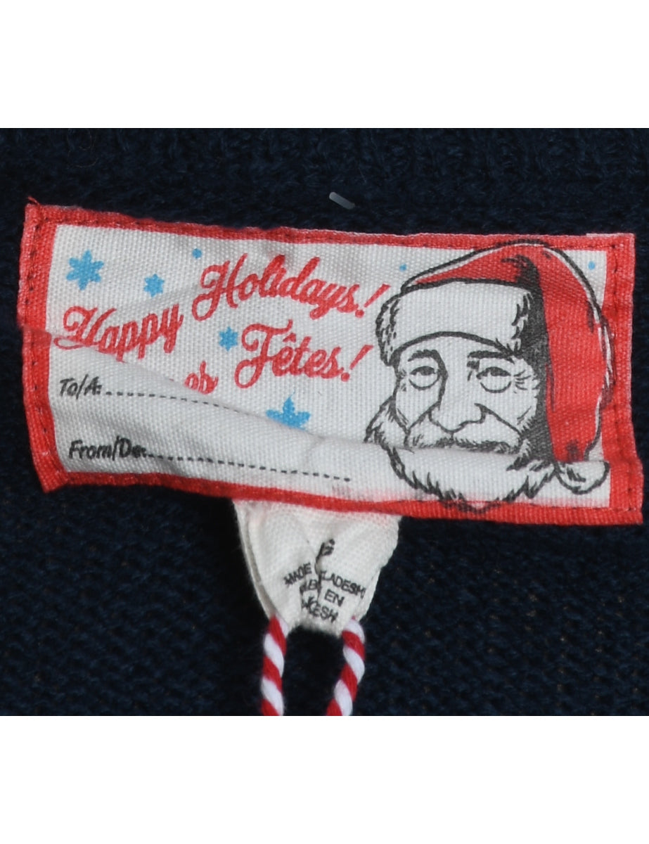 Snowman design navy Christmas jumper complete with a ribbed neck.