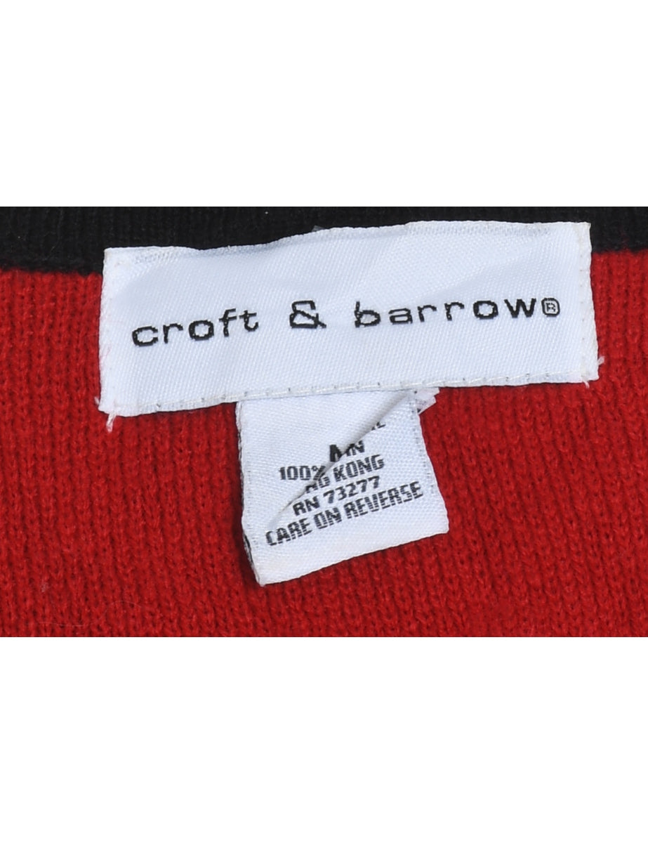 Snowman design red knit vest complete with a v-neck and an applique design.