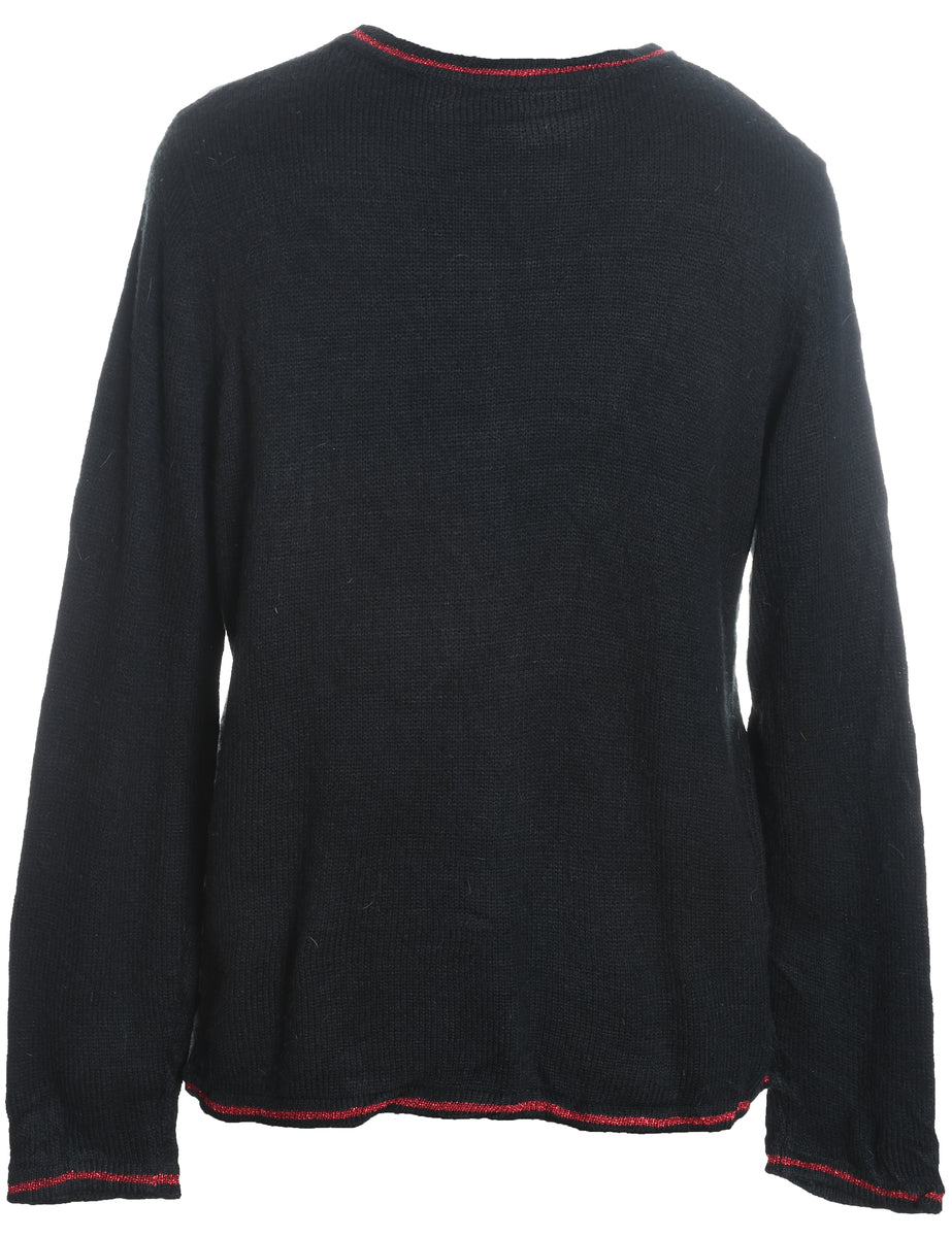 Black Embroidered Merry Christmas Design Knit Jumper - L