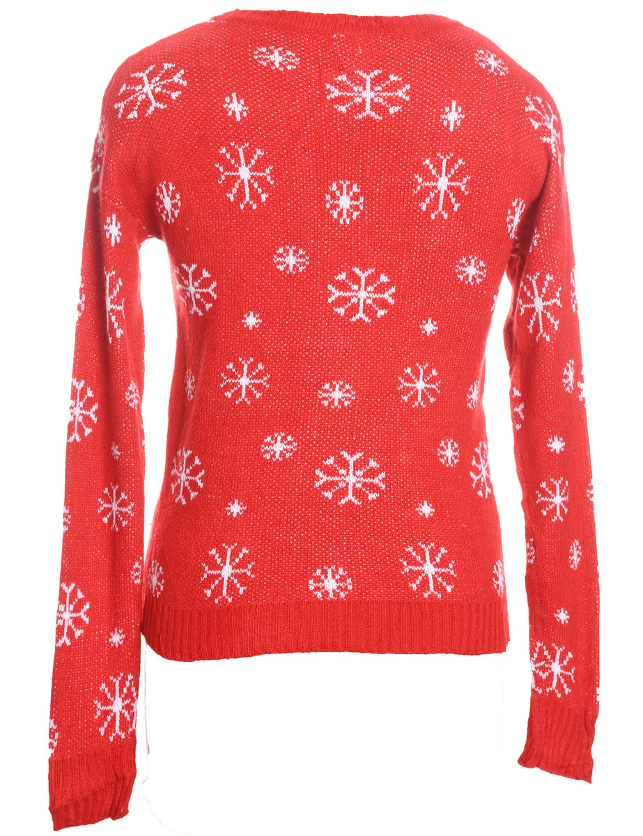 Red Christmas tree design knit jumper complete a drop shoulder and sequins.