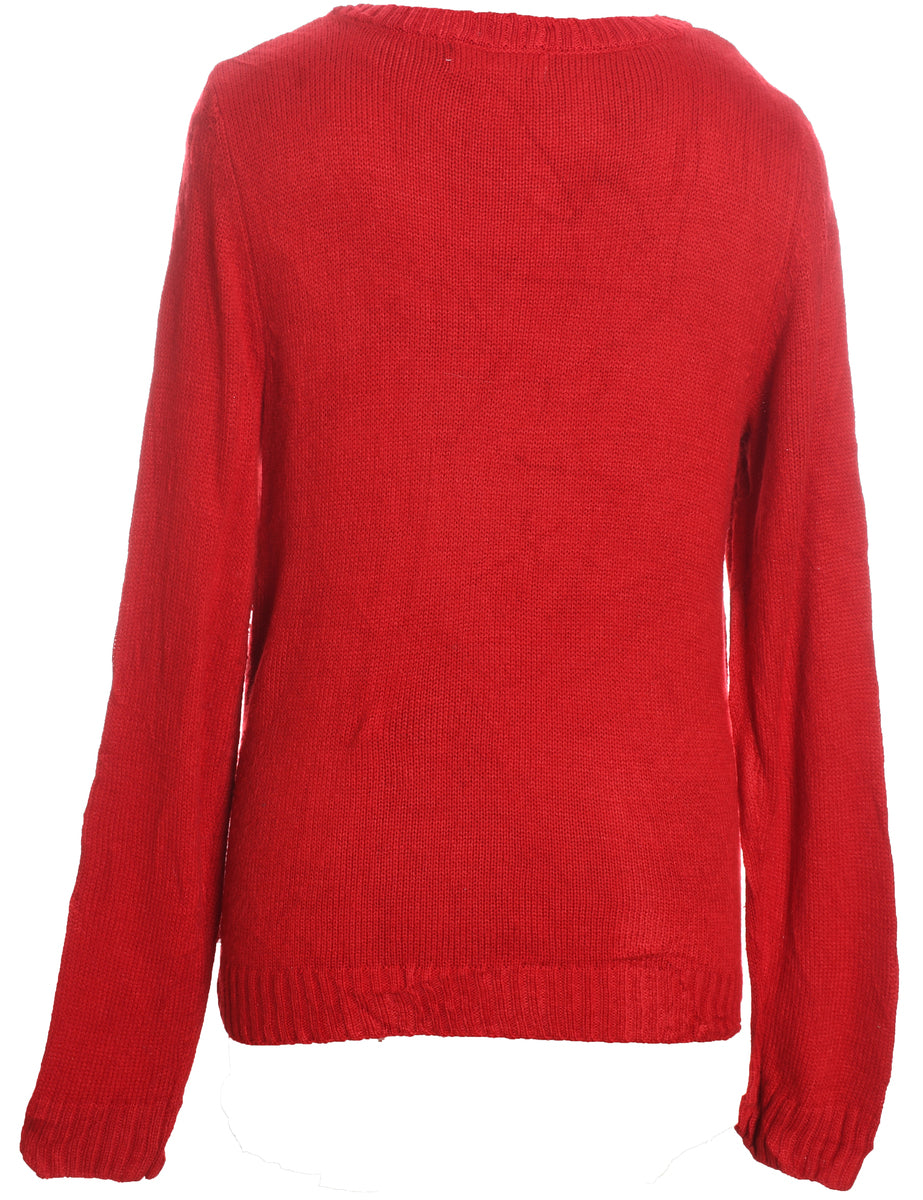 Christmas tree print jumper. Comes in red with , a round neck and pom poms.
