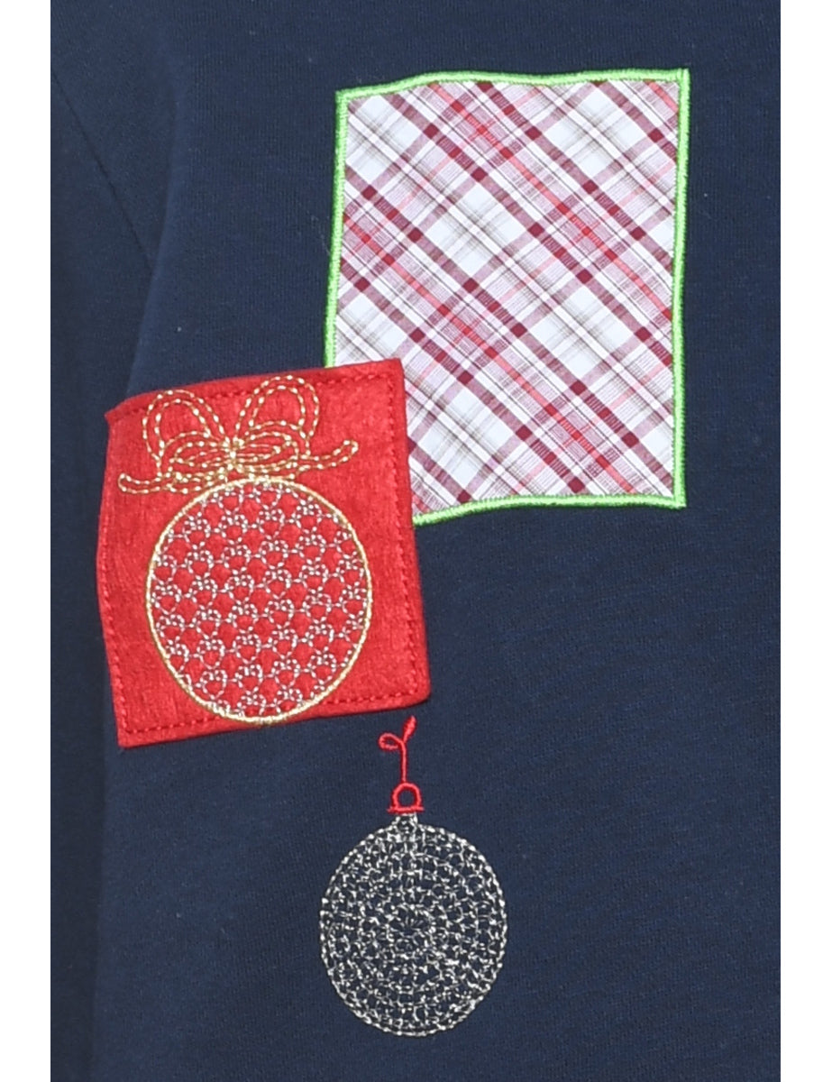Embroidered christmas sweatshirt. Comes in navy with a round neck and an applique design.