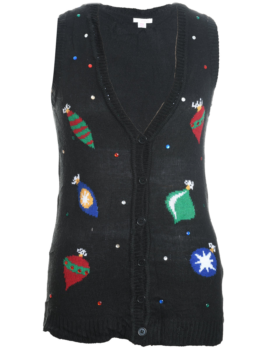 Multi-colour knit bauble design Christmas vest complete with a v-neck and beading.