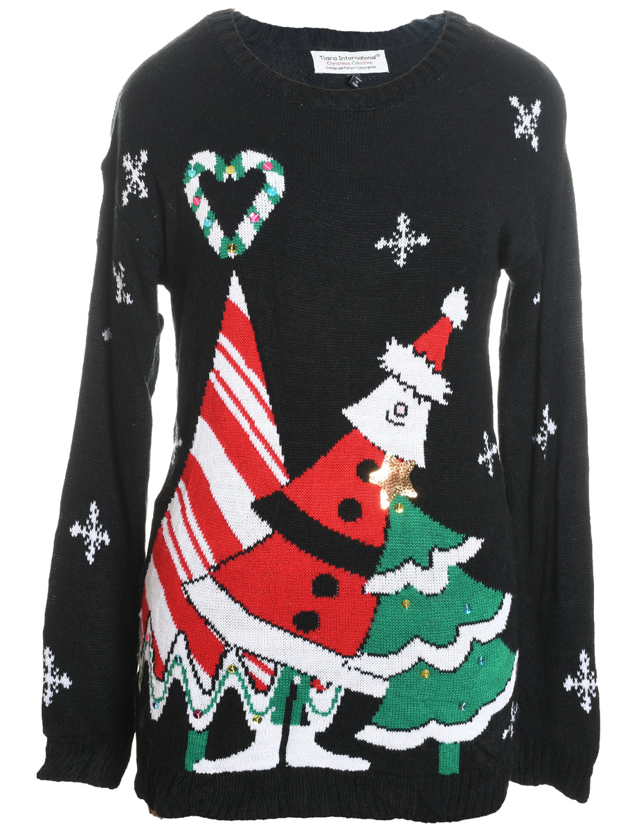 Black festive Christmas jumper complete with a drop shoulder and sequins.