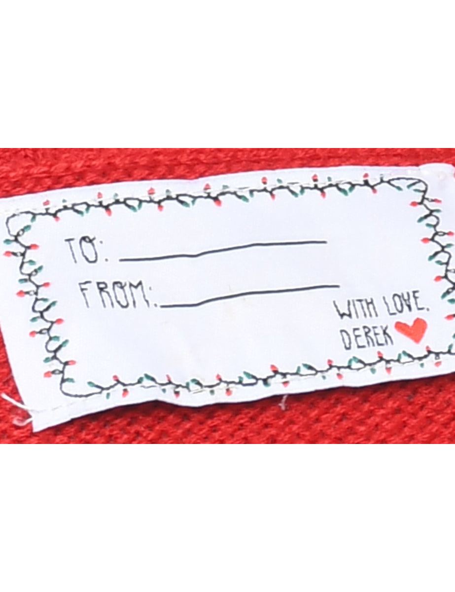 Festive print christmas jumper comes in red with a drop shoulder and sequins.