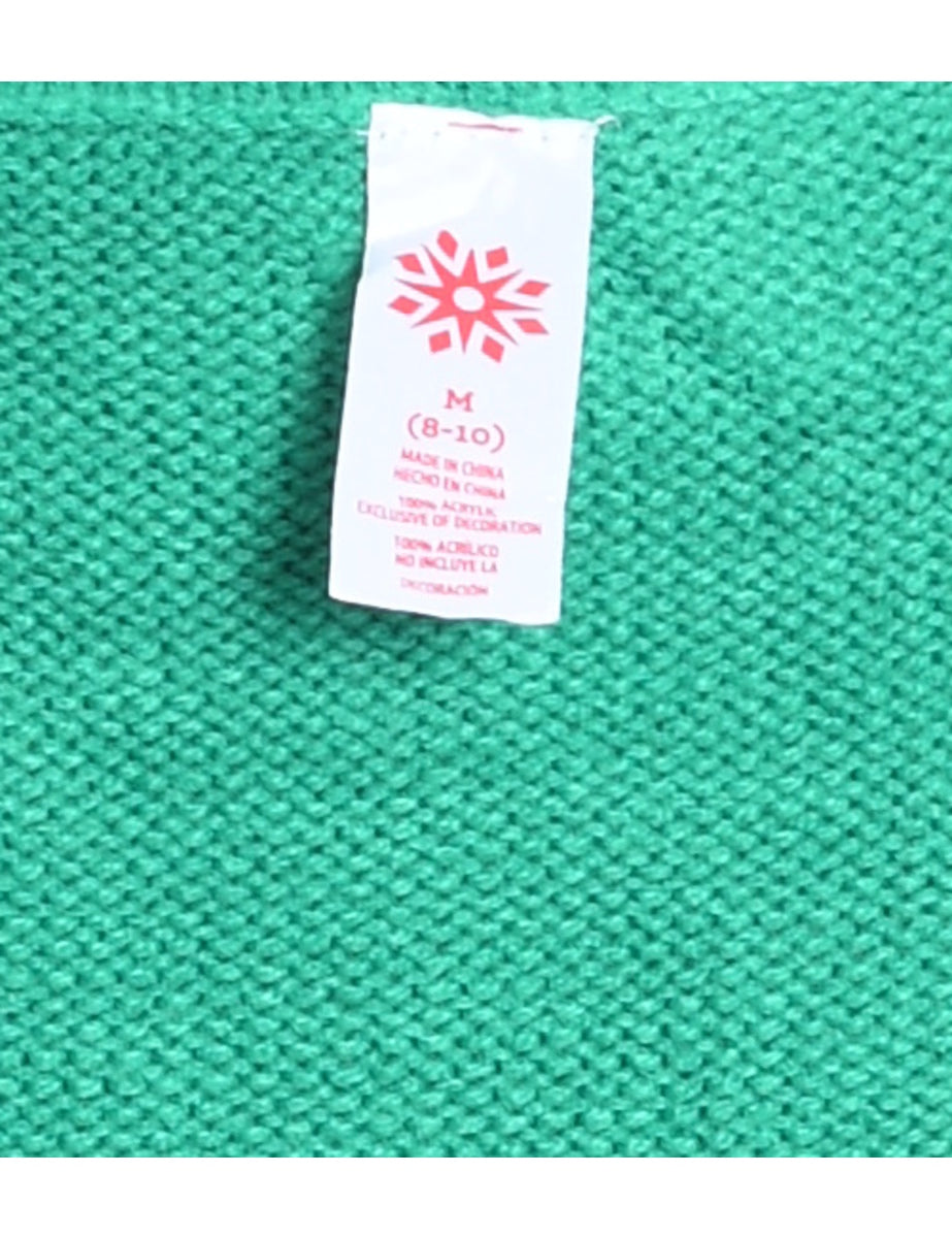 Light Green Knit Gingerbread Design Christmas Jumper - M