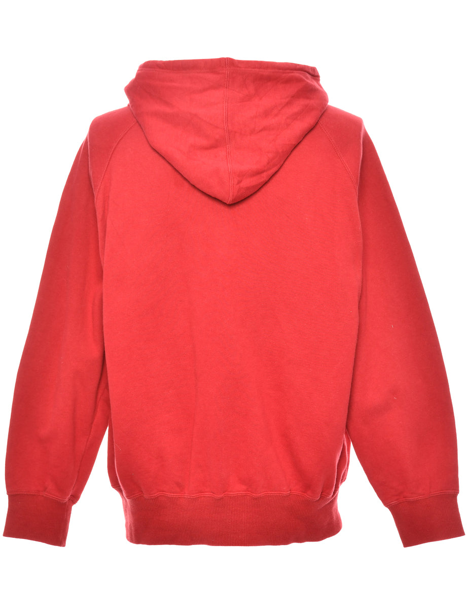 Festive season Christmas sweatshirt comes in red with nordic print, a hood and one pocket.