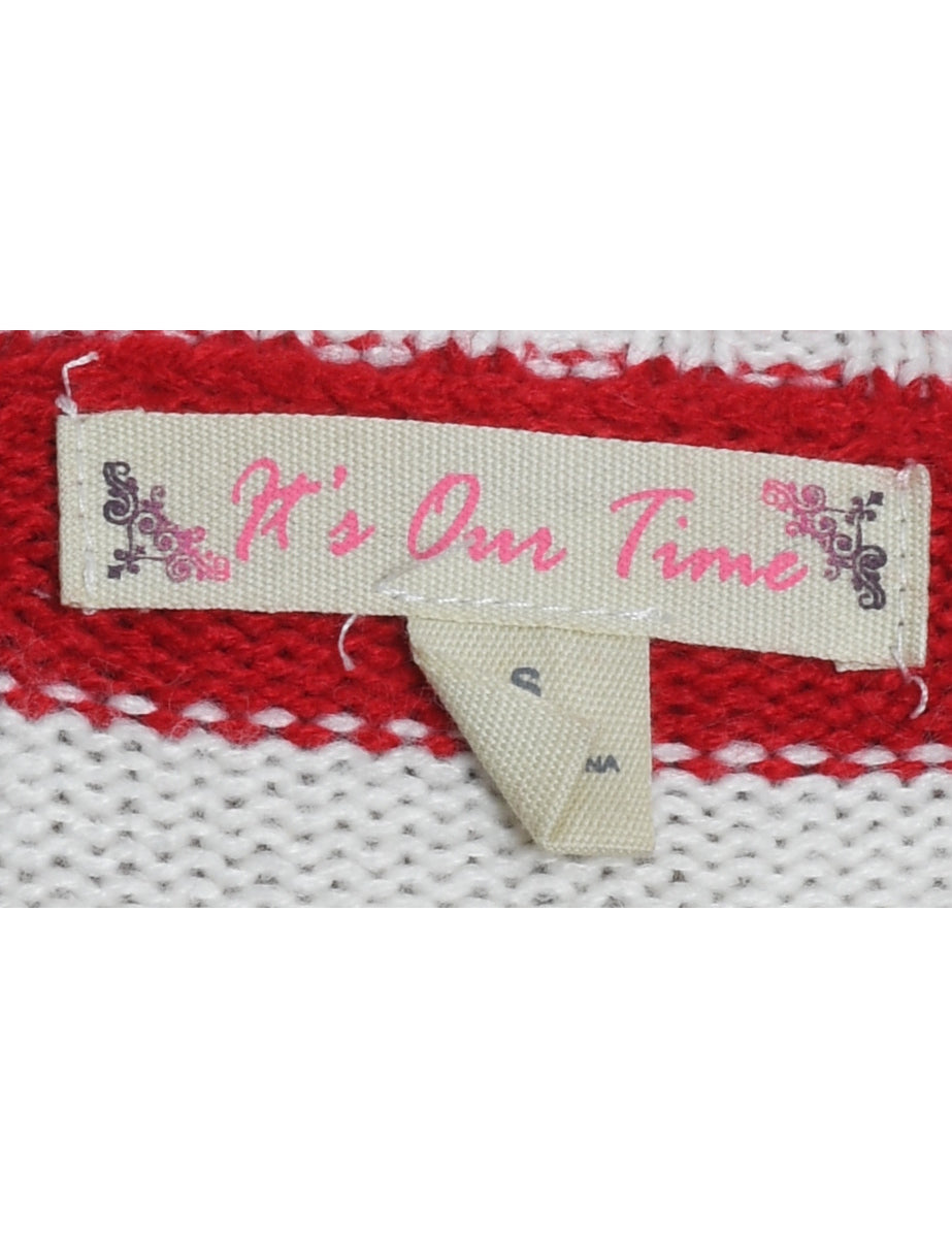 Penquin christmas jumper in off white & red with an applique design and sequins.