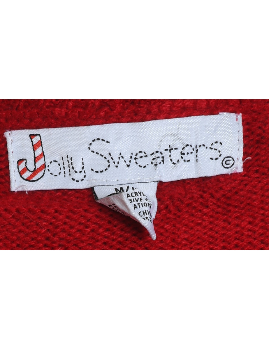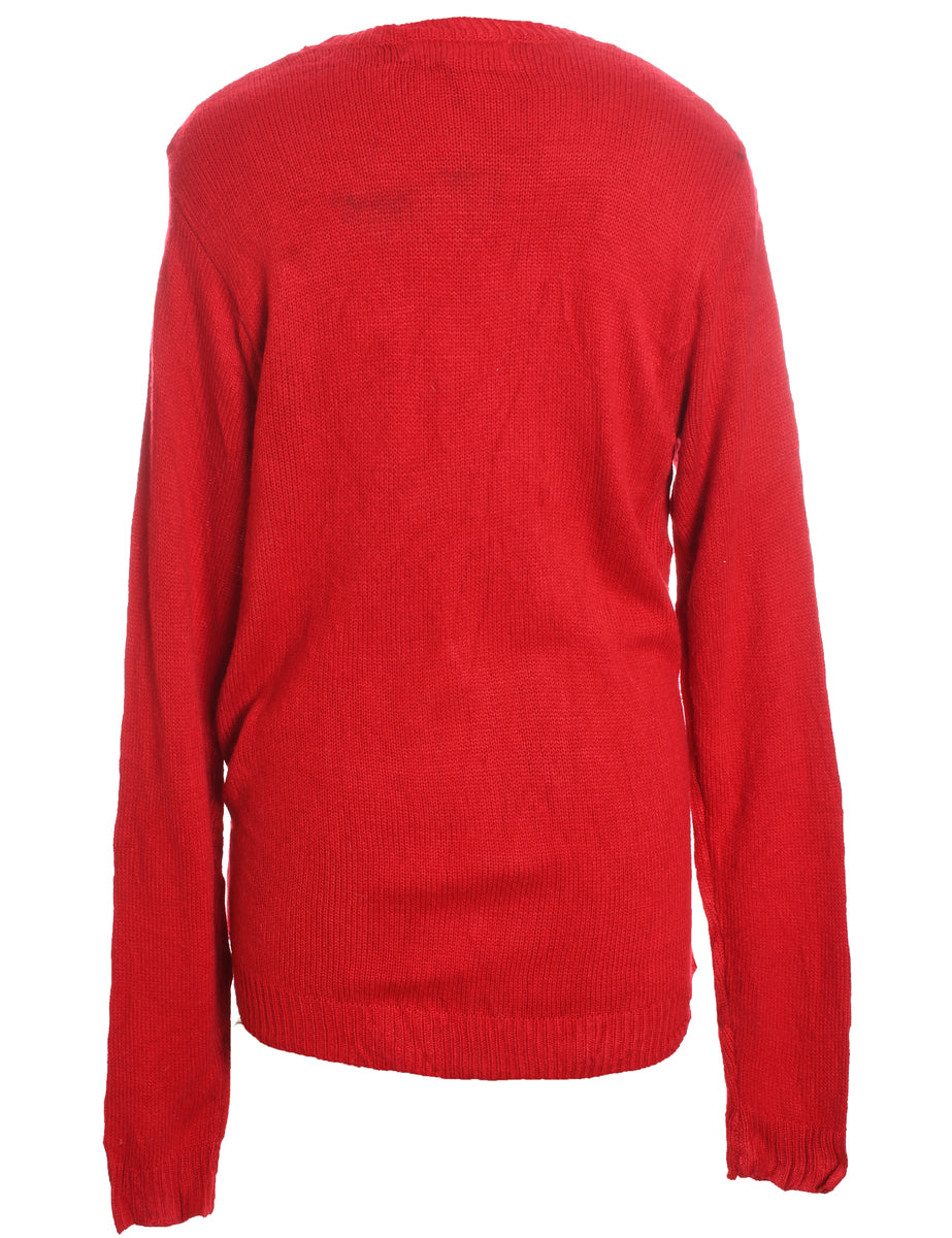 Red embroidered applique design Christmas jumper complete with a drop shoulder.