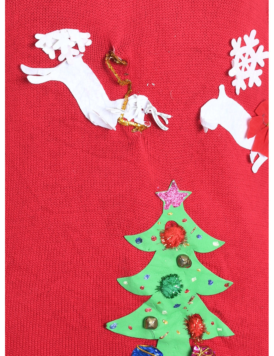 Red knit reindeer design Christmas jumper complete with an applique design and small bells attached.