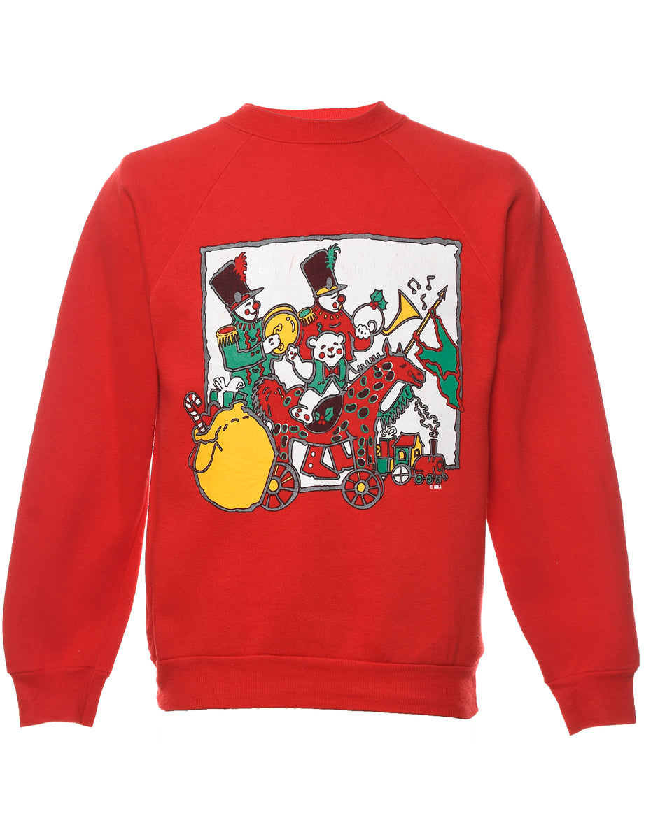 Red Printed Christmas Sweatshirt - M