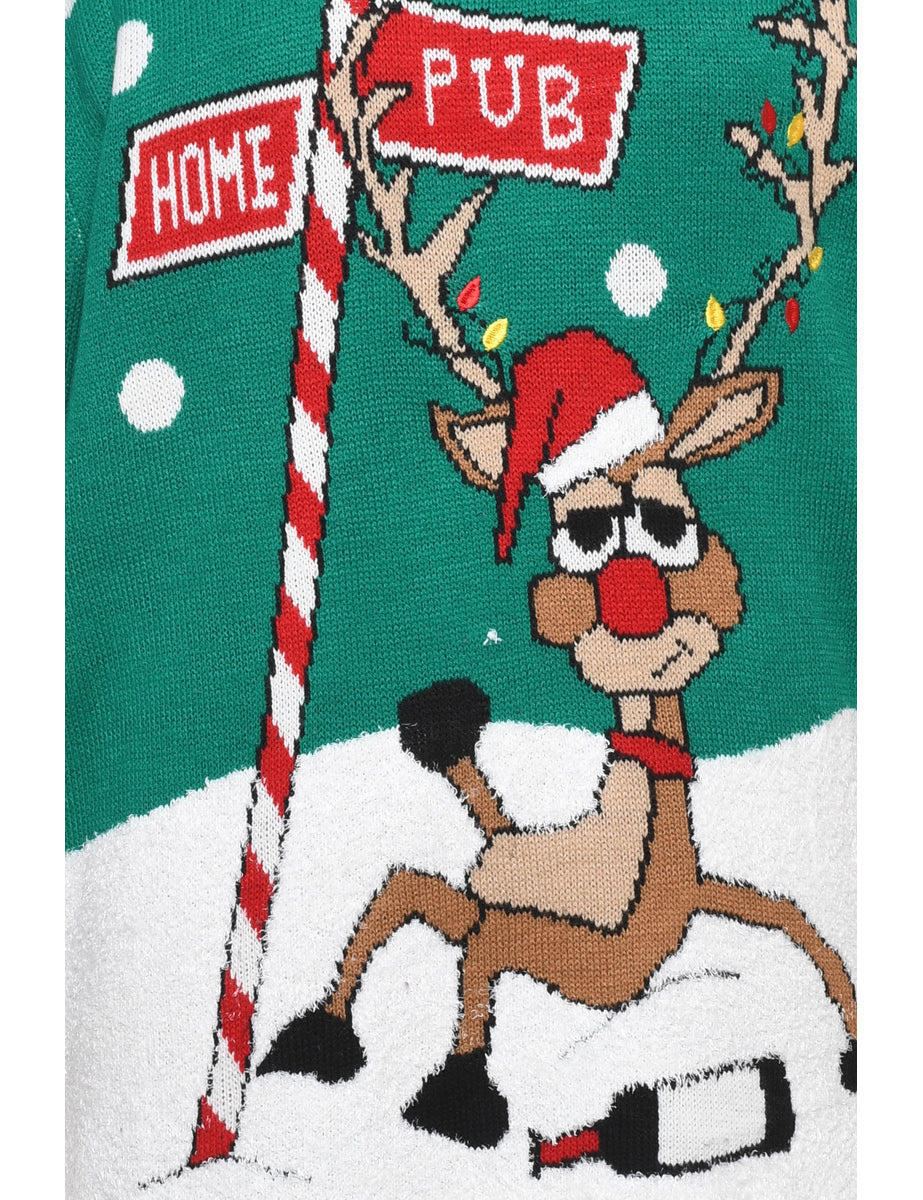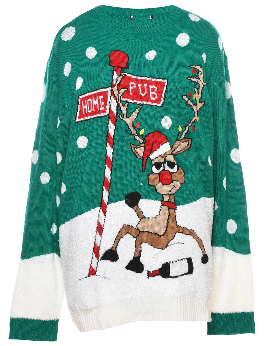 Reindeer christmas jumper. Comes in green with a drop shoulder.