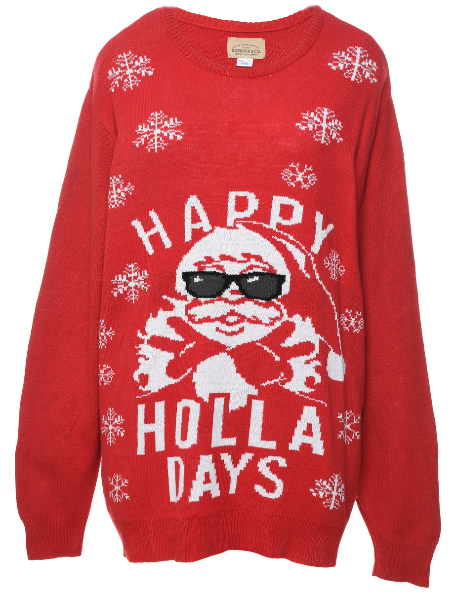Santa claus red christmas jumper with a ribbed neck and cuffs.