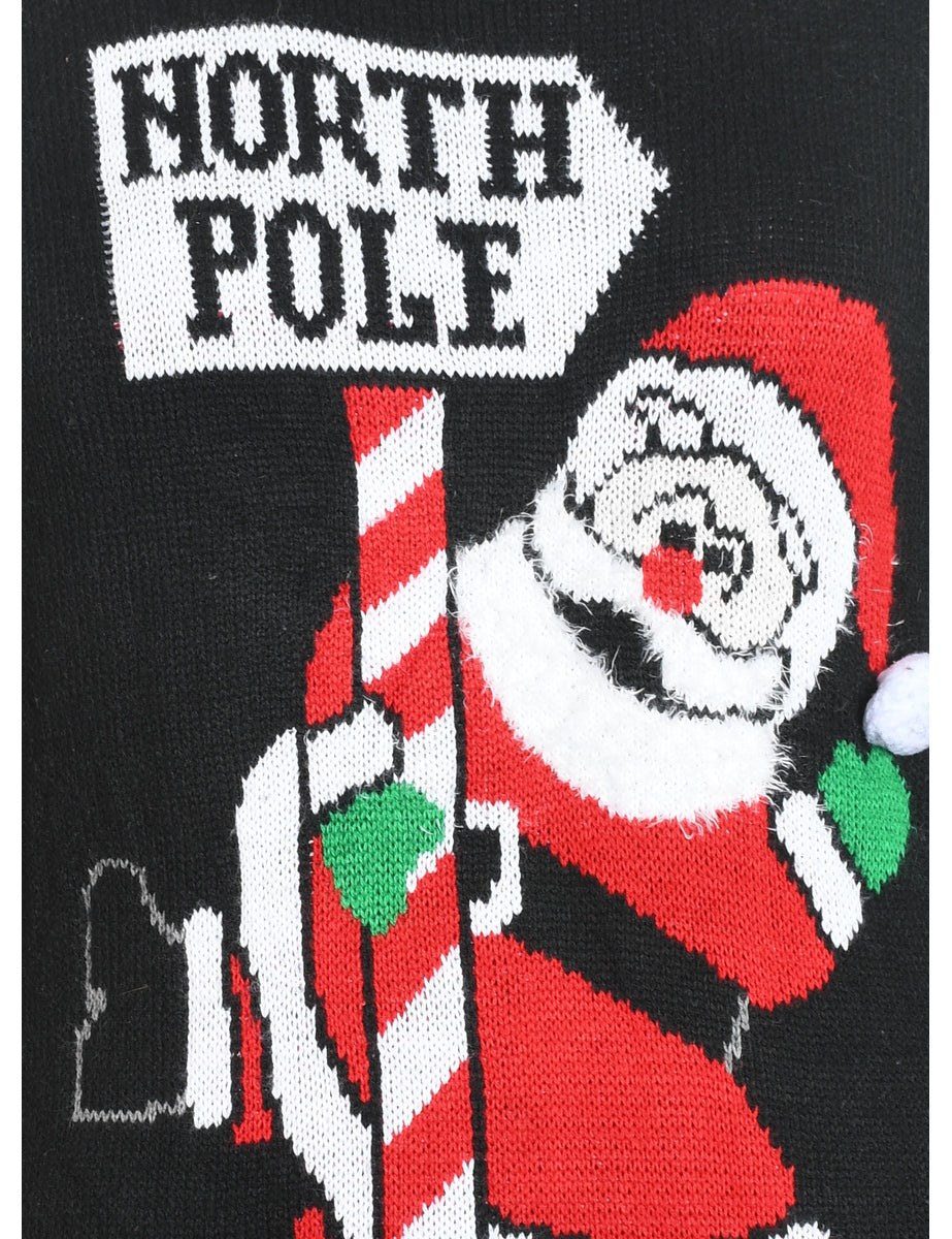 Santa Claus design black knit Christmas jumper complete with a drop shoulder.