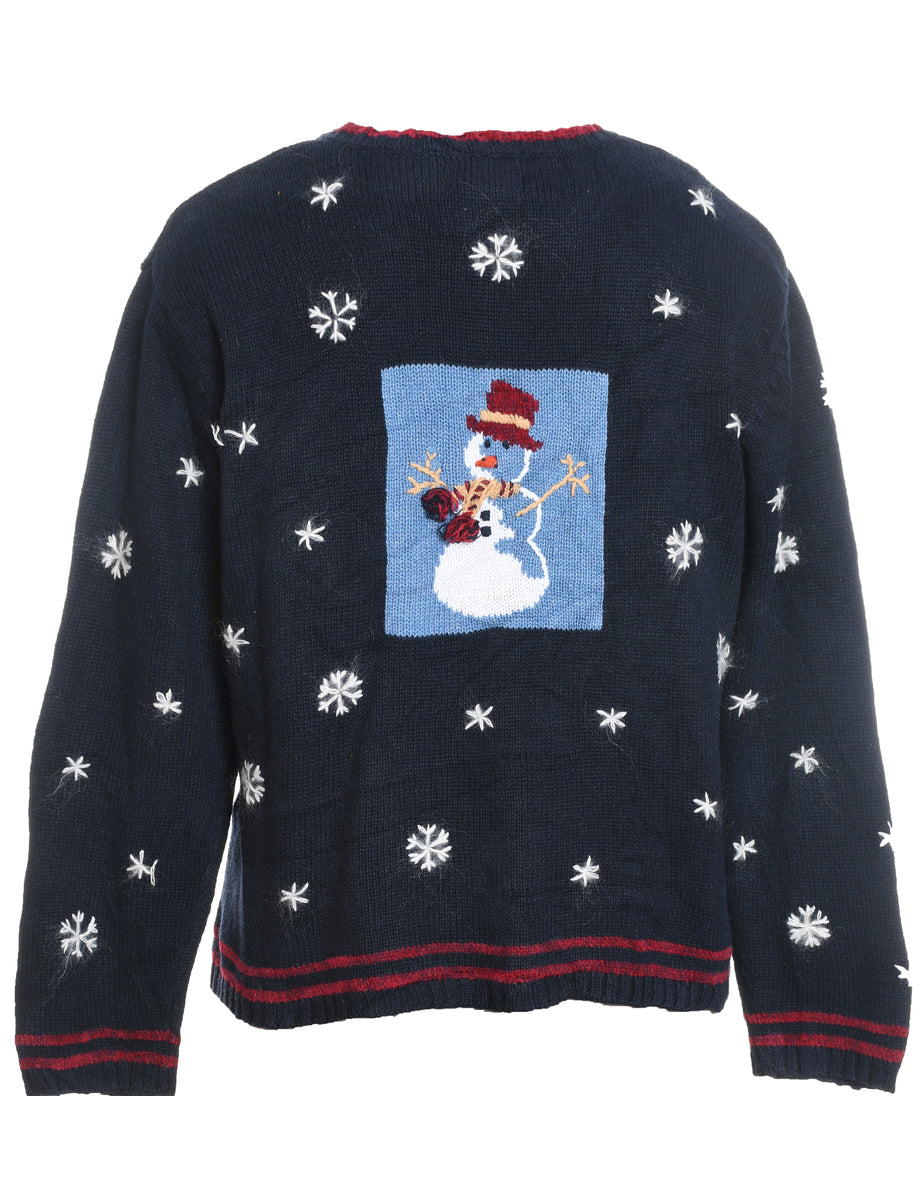 Snowfall design christmas cardigan in navy with a drop shoulder.