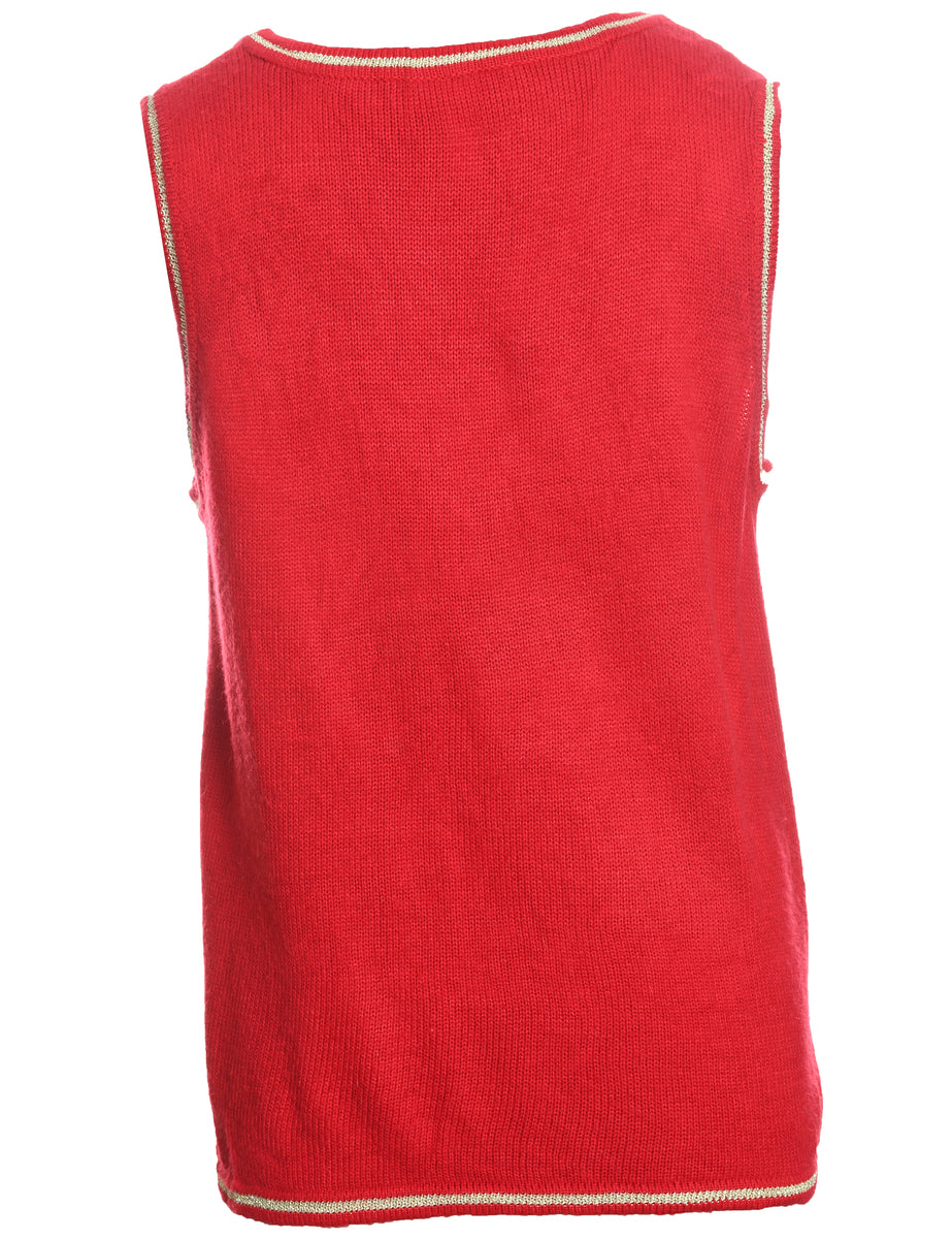 Snowman christmas sweater vest. Comes in red with an applique design and beading.