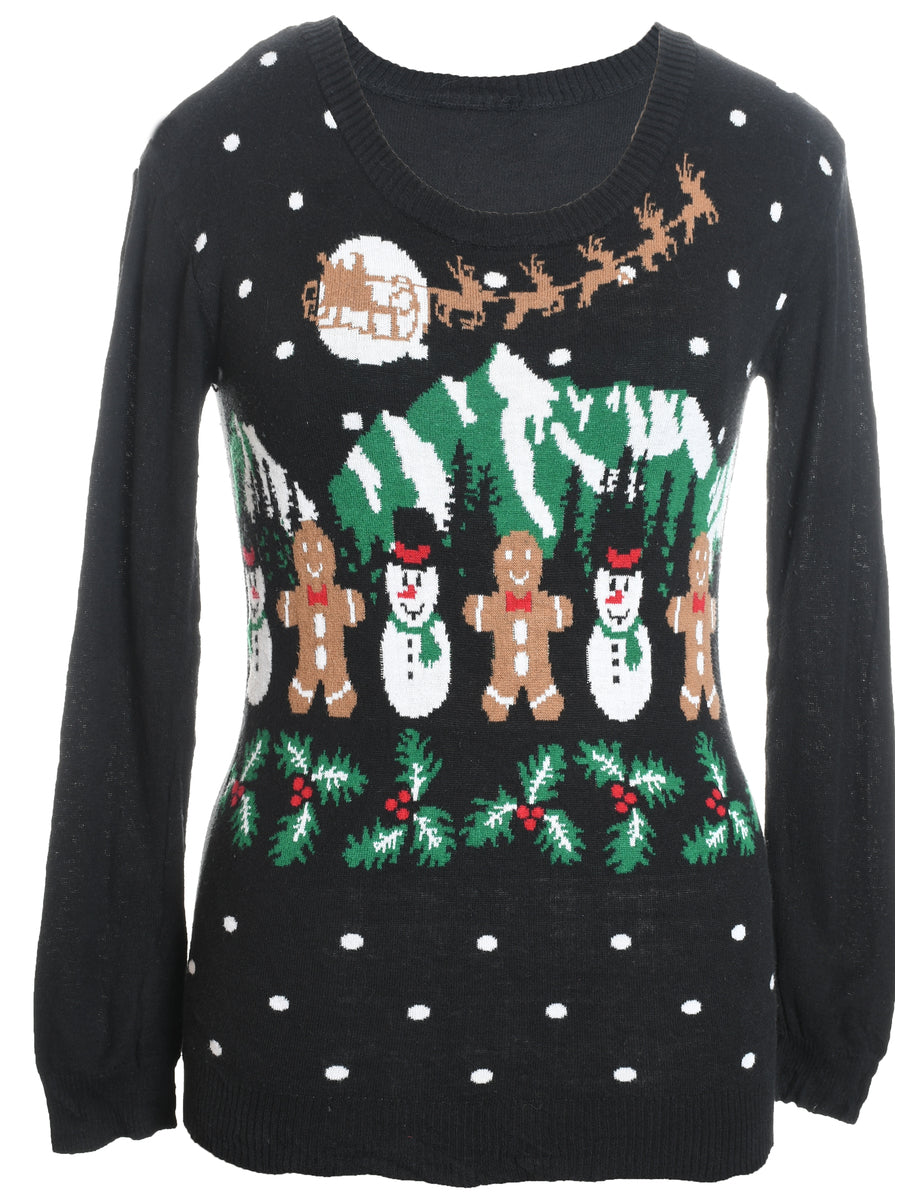 Snowman & Gingerbread Design Knit Christmas Jumper - S