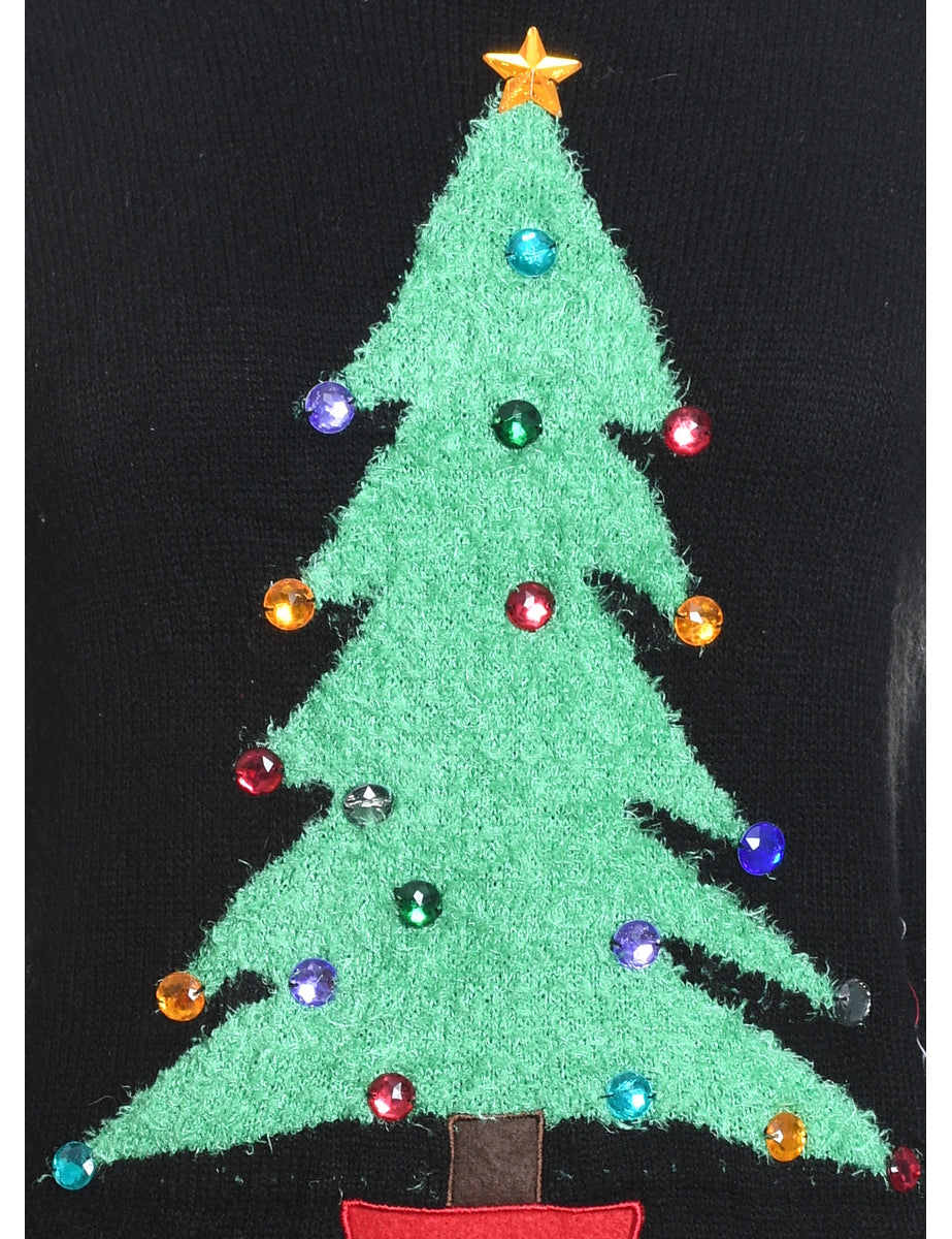 Christmas tree print black cardigan with beading and a drop shoulder.