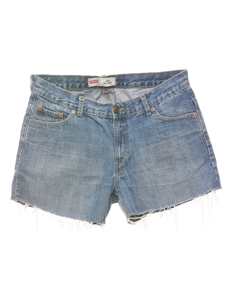 Levi's classic cut-off denim shorts. Comes in stone wash with multiple pockets.