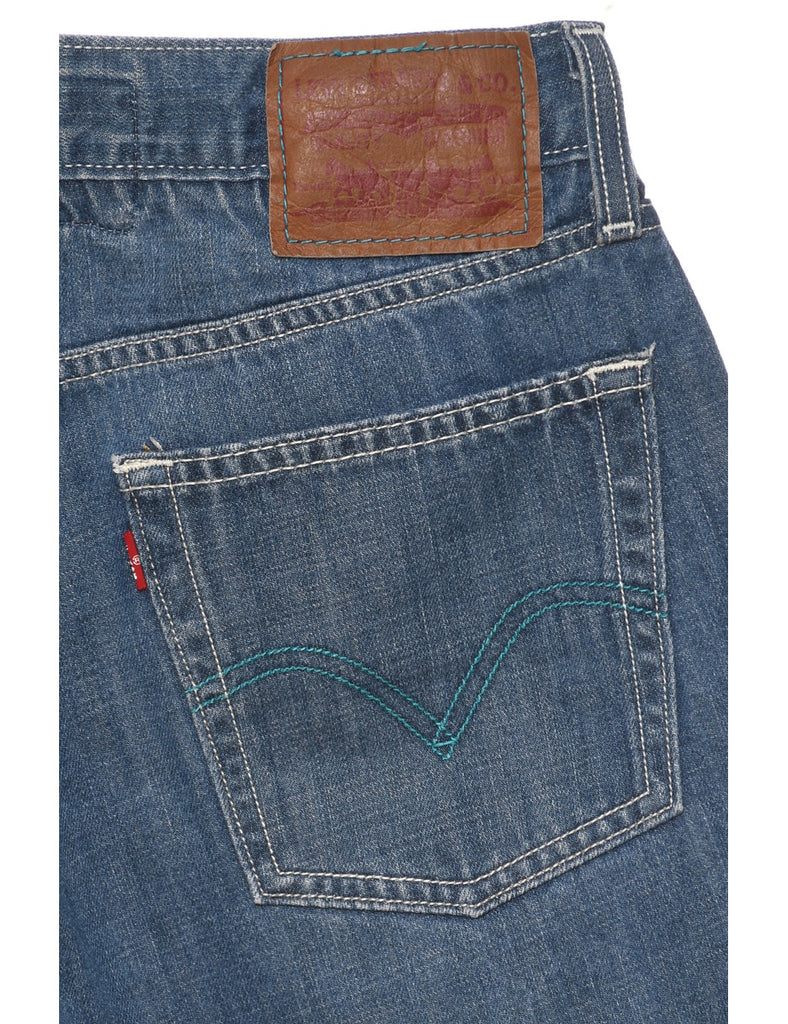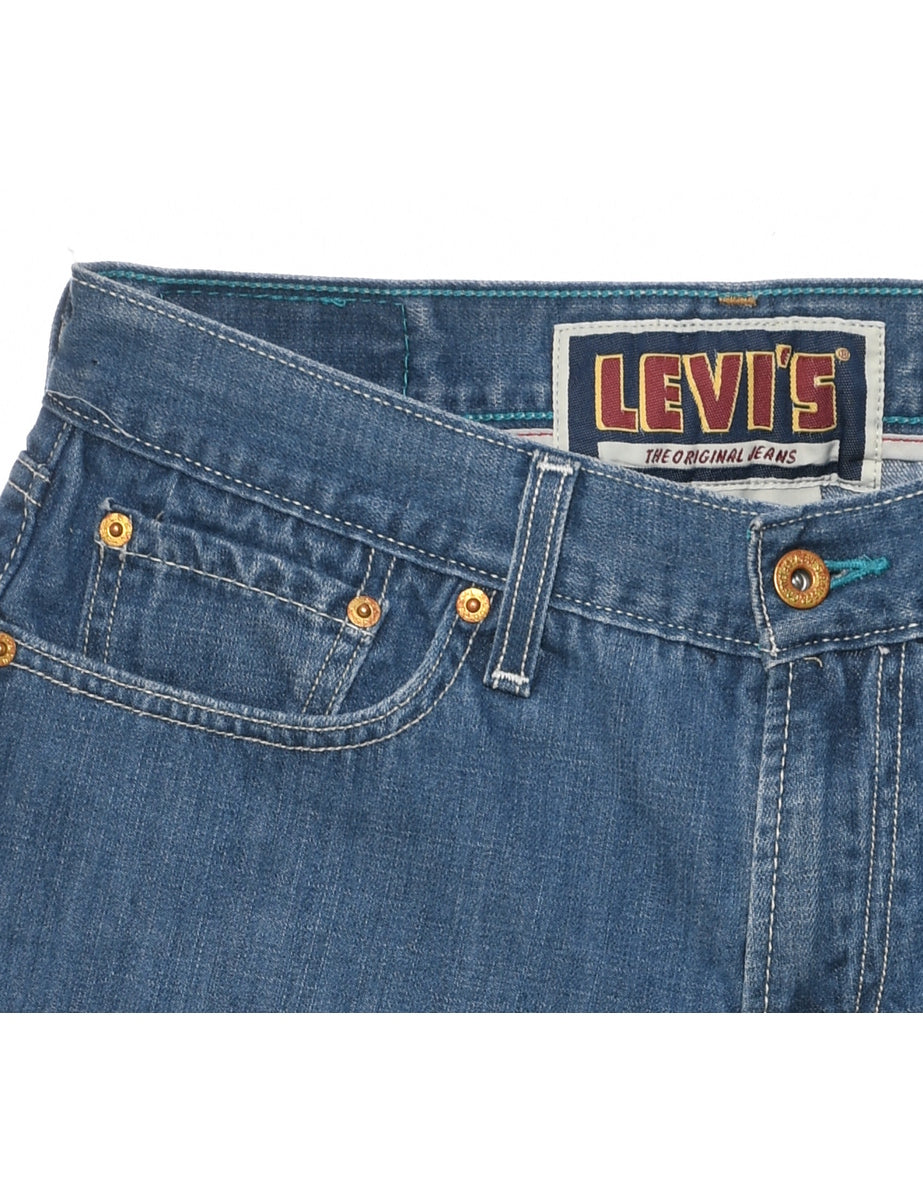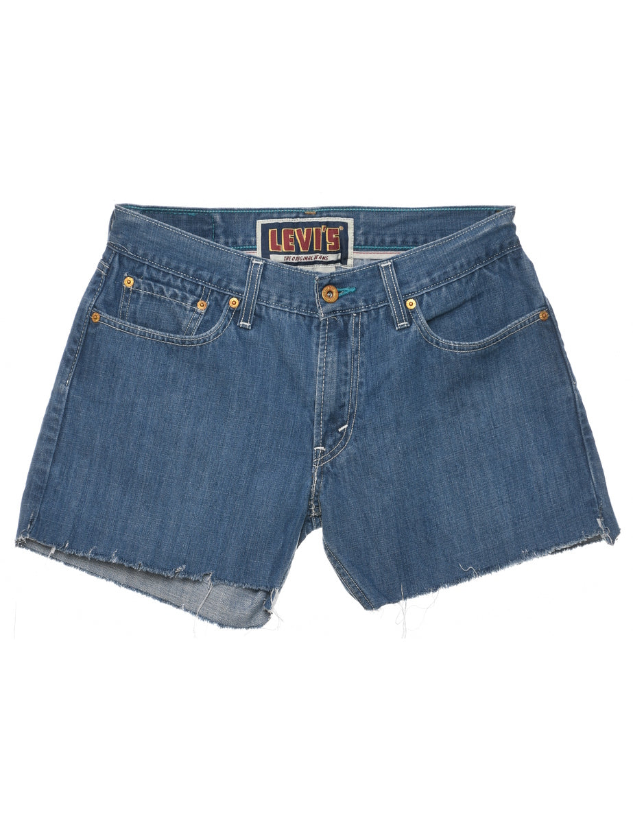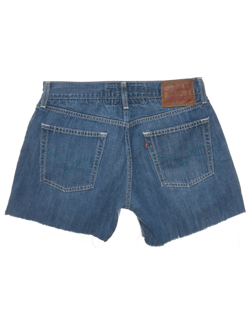 Levi's cut-off denim shorts in medium wash with belt loops and multiple pockets.