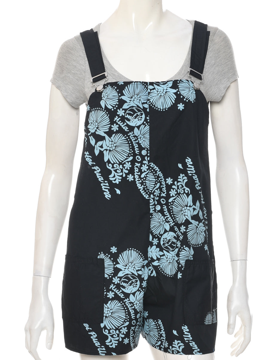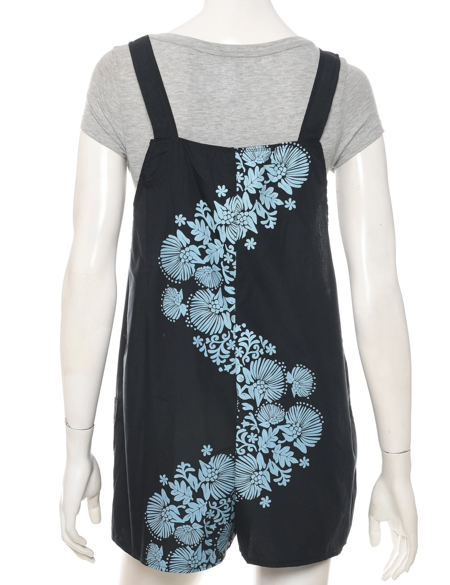 Floral cropped dungarees in black with adjustable strap.