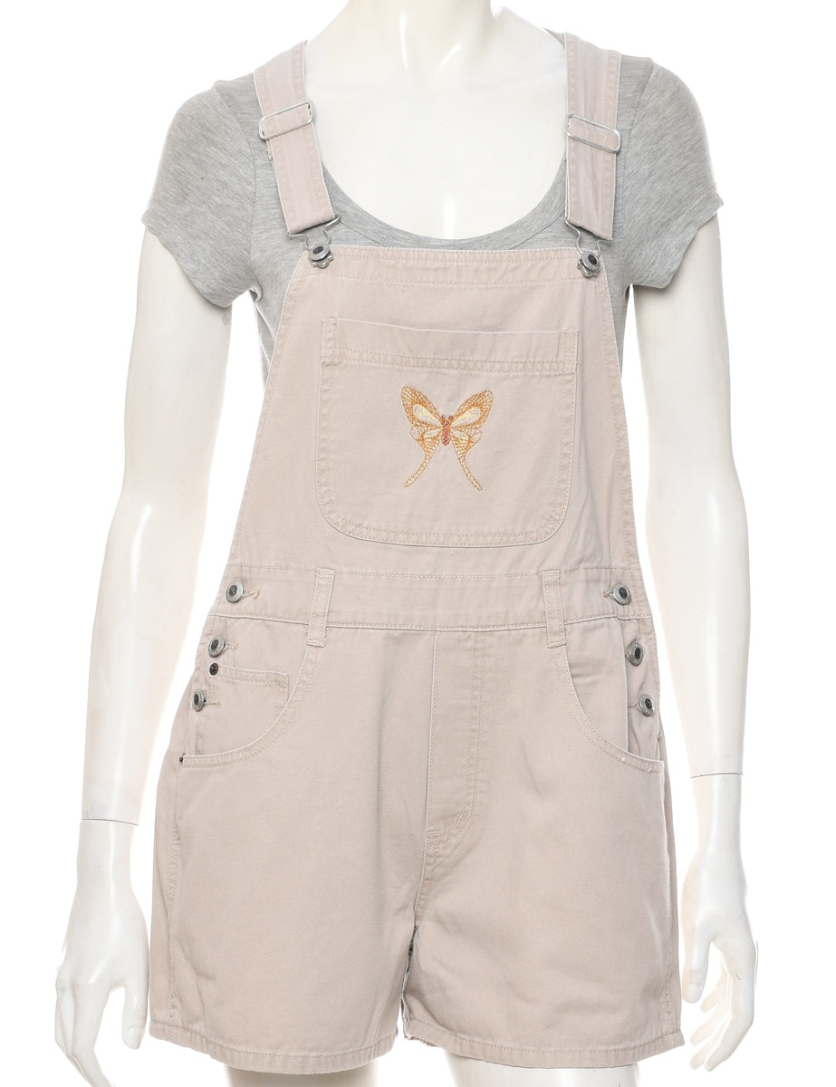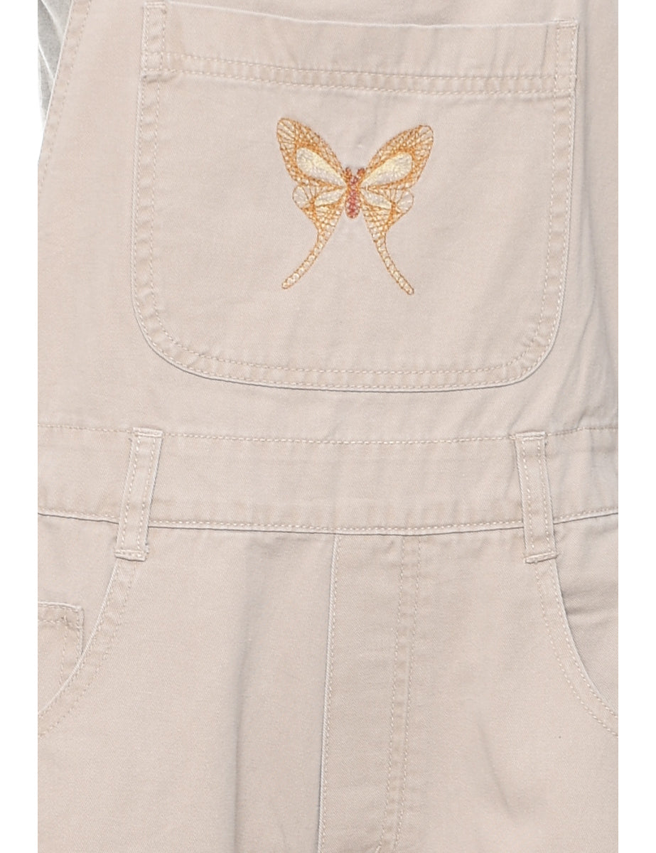 Boyfriend fit cropped dungarees. Comes in light brown with adjustable strap and multiple pockets.